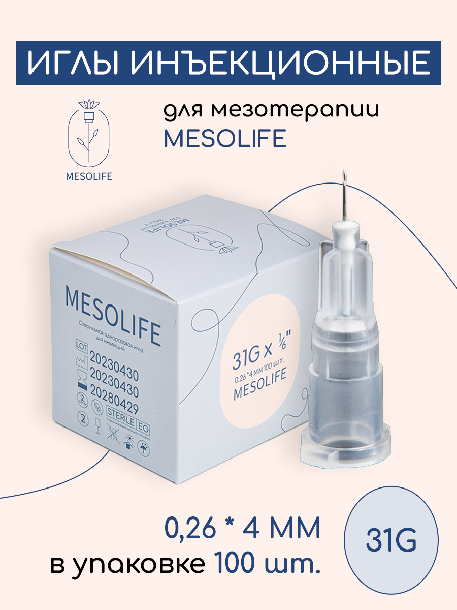 Купить Игла для мезотерапии MESOLIFE 31G 0,26*4мм 100шт
