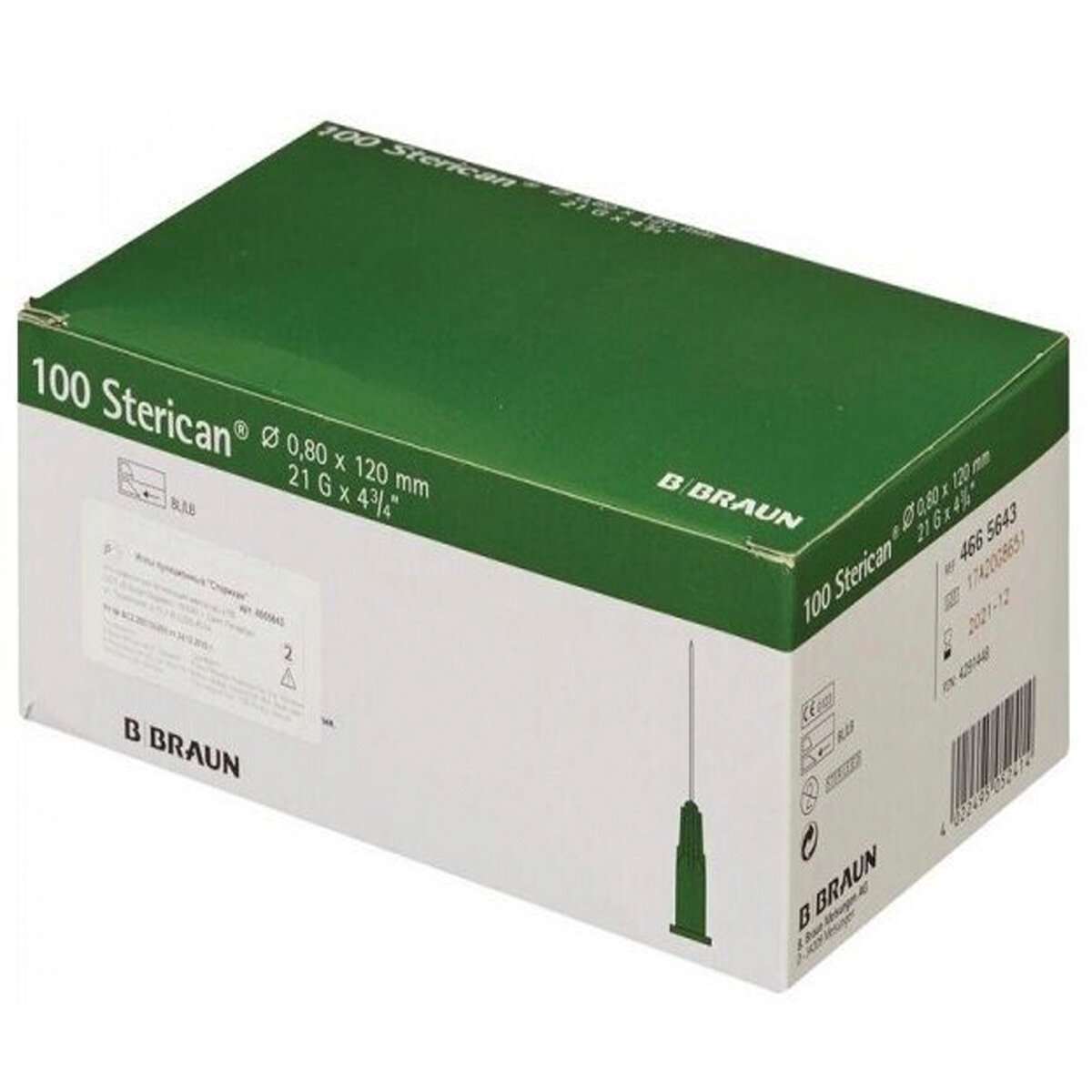 BBraun Sterican Игла инъекционная Стерикан 21G (0,80 х 120 мм), 100 штук