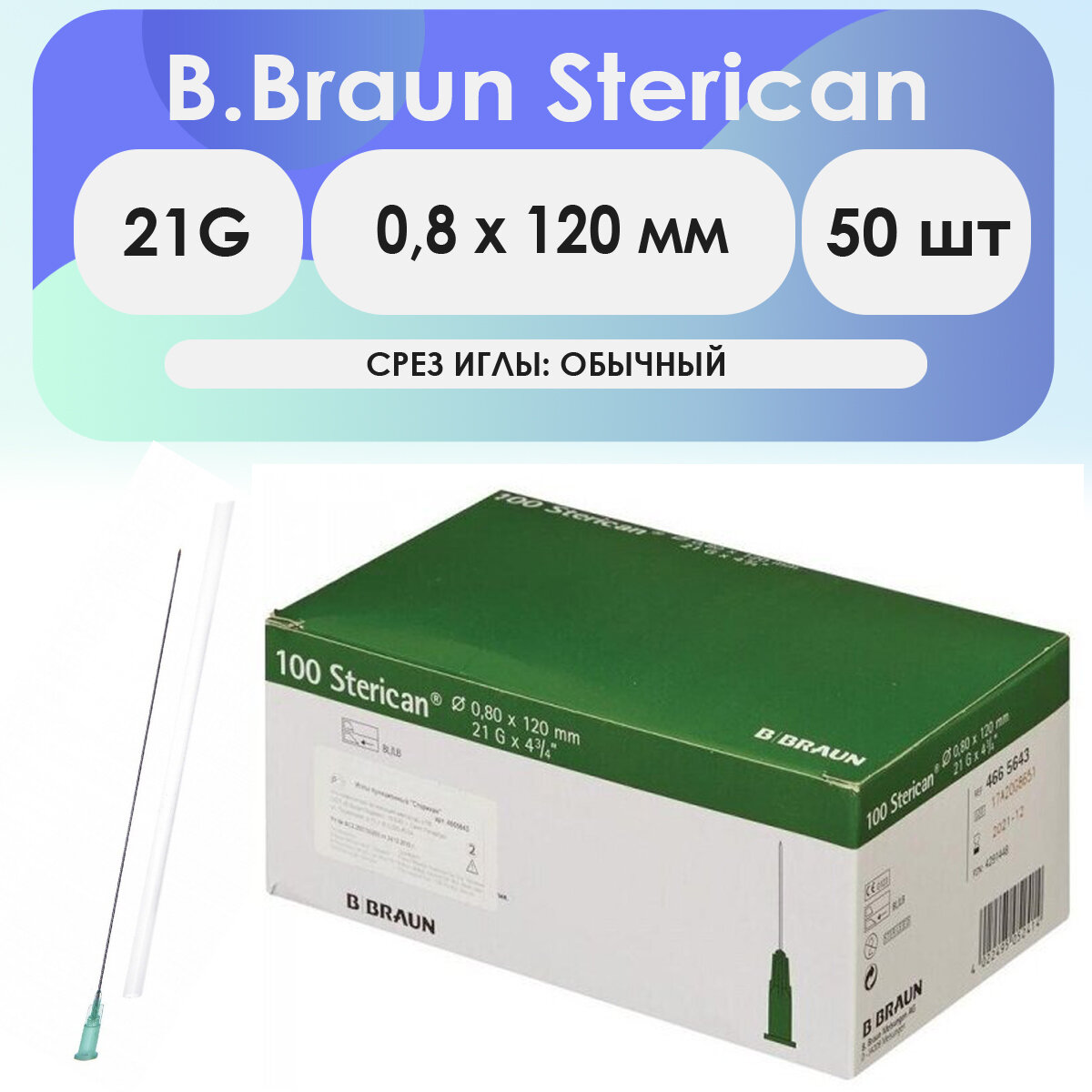 Игла инъекционная B. Braun Sterican 21G (0,8 х 120) - 50 шт комплект интересное:
