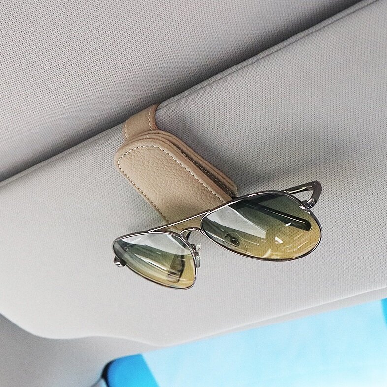 Купить Держатель автомобильный для очков кожаный/крепление для очков в автомобиль/магнитный зажим в машину за козырек TAKIENG бежевый