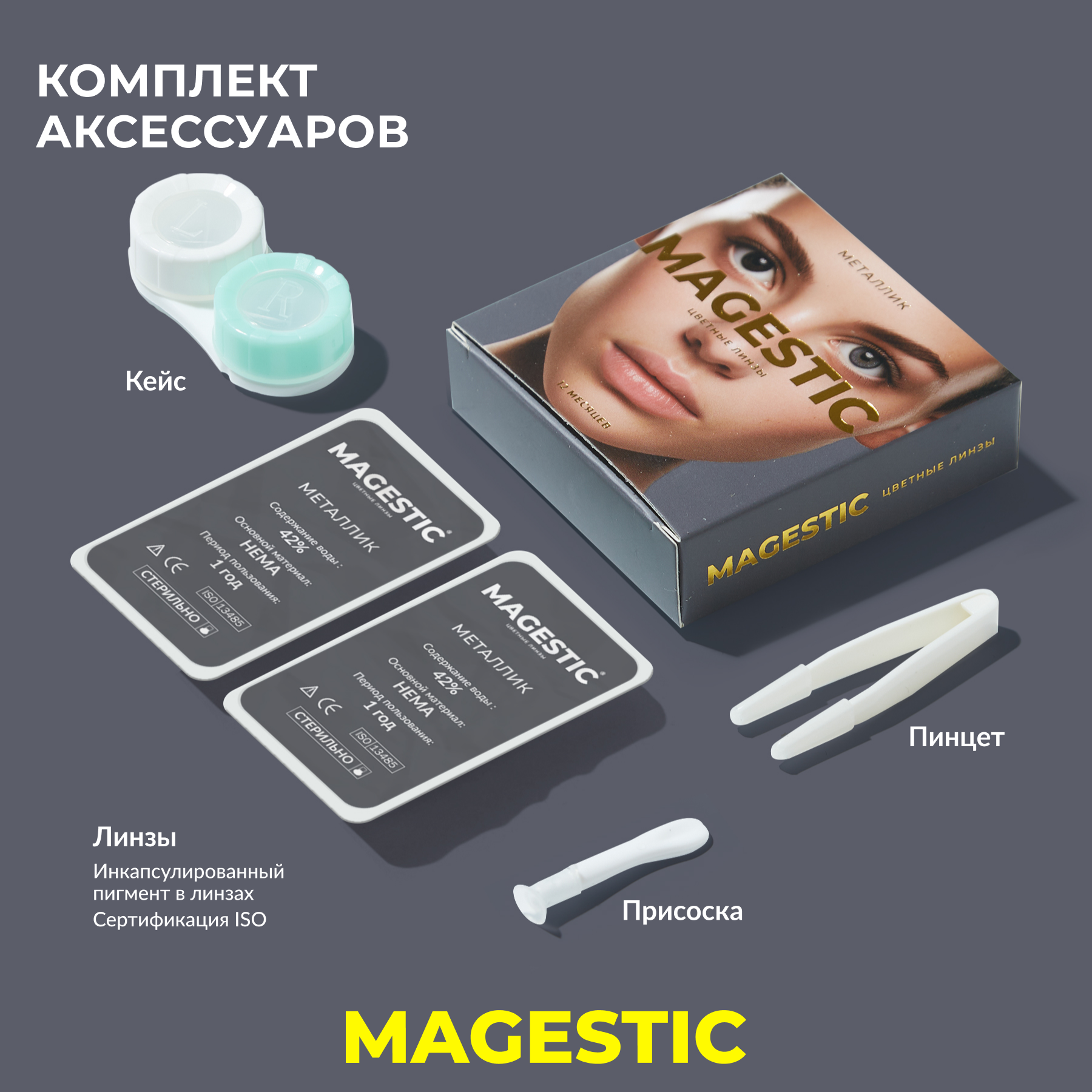 Цветные металлик контактные линзы для глаз MAGESTIC Classic 1 пара, 12 месяцев, 0.00, кривизна 8,6 мм, диаметр 14,5 мм