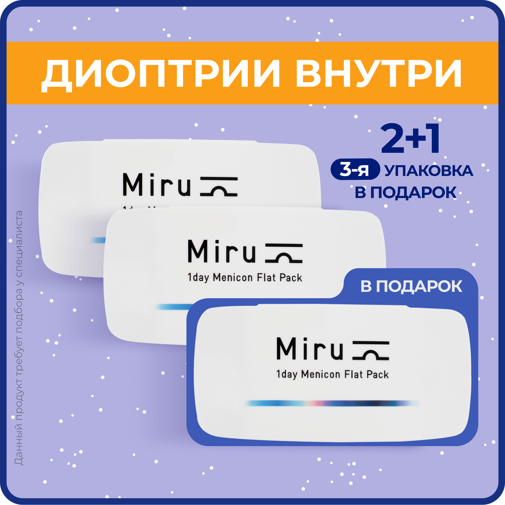 Контактные линзы MIRU 1 Day Menicon Flat Pack, Кривизна 8.6 Однодневные, -2.5 / 14.2 / 8.6, 3 упаковки по 30 шт.