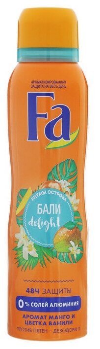 Дезодорант FA Ритмы Острова Бали Delight , аромат манго и цветка ванили, 150 мл