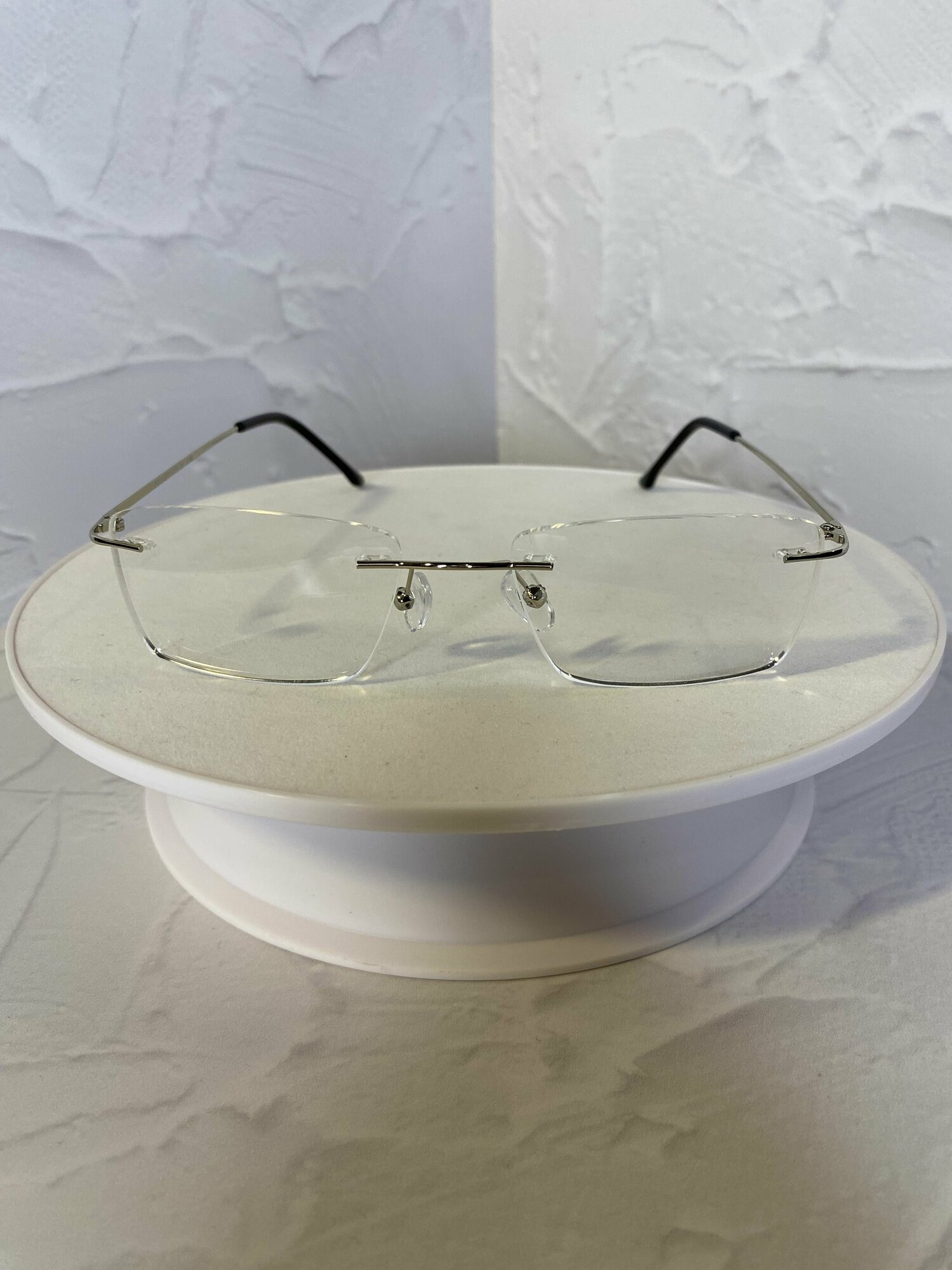 Безободковые очки с диоптриями. Очки на втулках женские/мужские F835 серебро +2.25