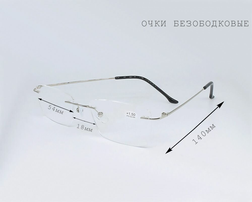 Безободковые очки с диоптриями. Очки на втулках женские/мужские F835 серебро +1.5