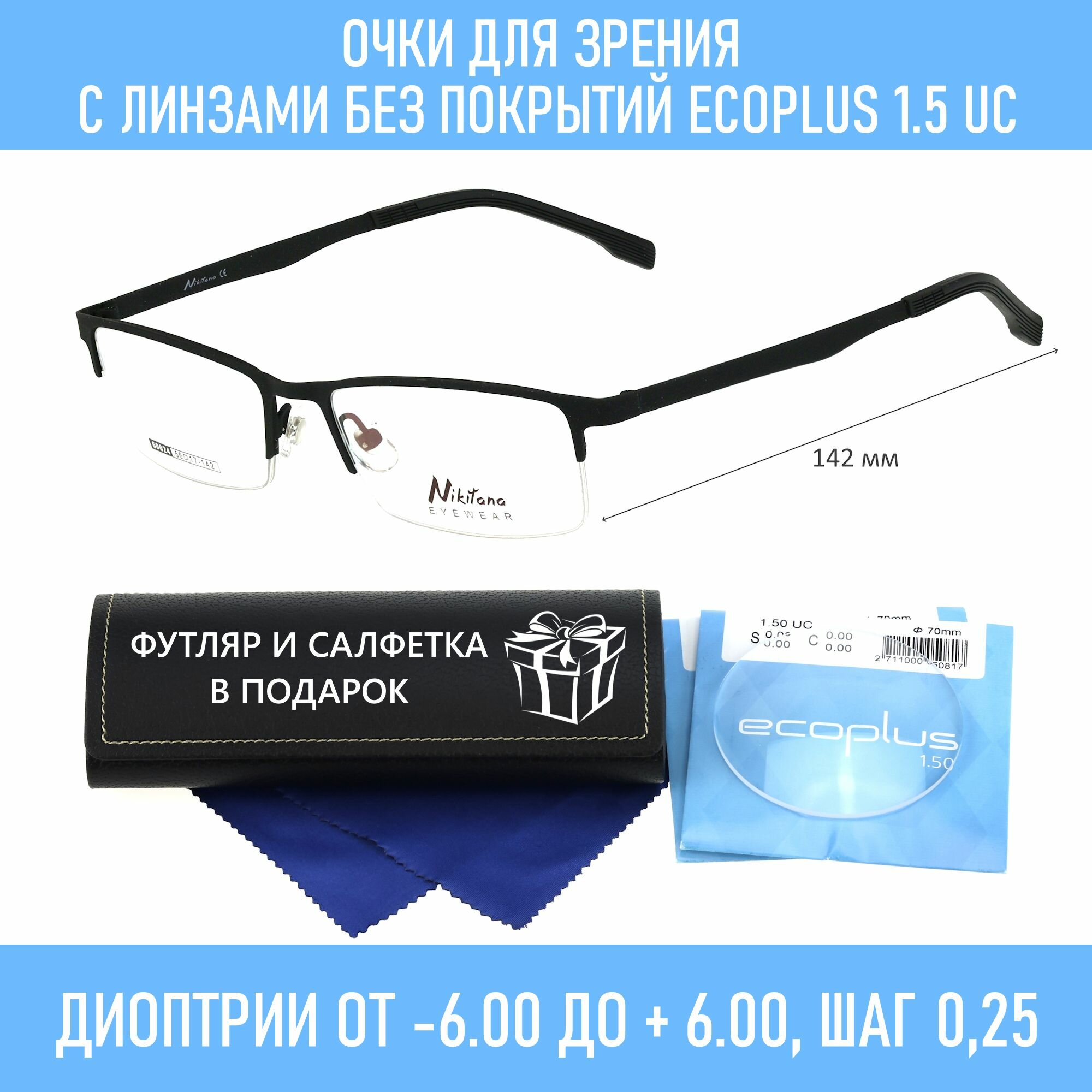 Очки для чтения с футляром на магните NIKITANA мод. 60024 Цвет 1 с линзами ECOPLUS 1.50 UC +0.25 РЦ 64-66 интересное: