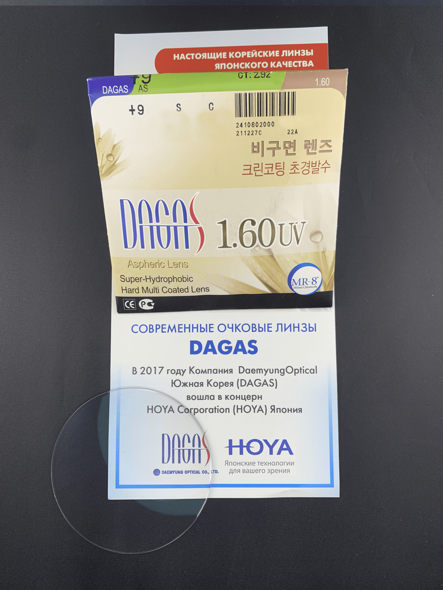 СохранитьАсферическая очковая линза Dagas 1.60 AS SHMC Гидрофобная -7.00 интересное: