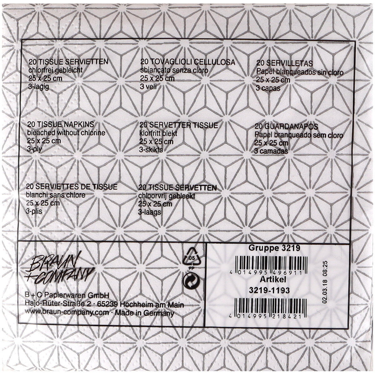 Салфетки с геометрическим рисунком "Арт Деко", 3 слоя, 25 х 25 см., 20 шт. (Германия).