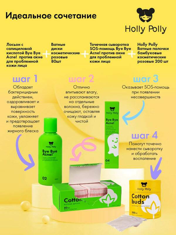 Ватные палочки HOLLY POLLY Косметические бамбуковые розовые, 200 шт интересное: