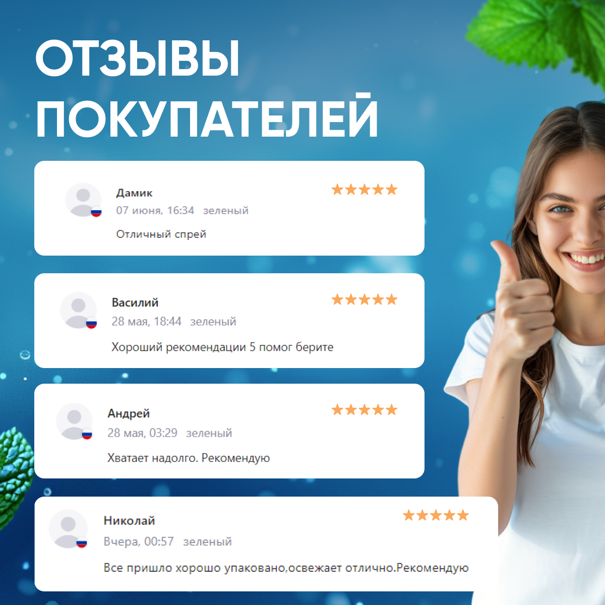 | Способ применения | Распылить в полости рта, нажав 1-2 раза на дозатор. Использовать после приема пищи или в любой ситуации, когда необходимо свежее дыхание. |