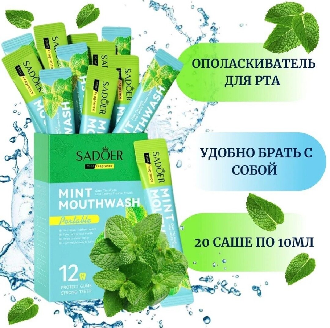 Набор ополаскивателей для полости рта в стиках Sadoer Мята, 20шт по 10мл интересное: