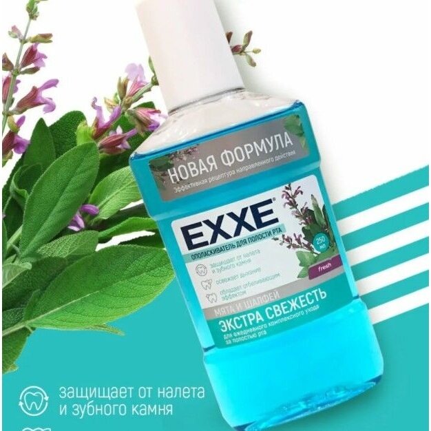 EXXE ополаскиватель Экстра свежесть мята и шалфей, 250 мл, шалфей