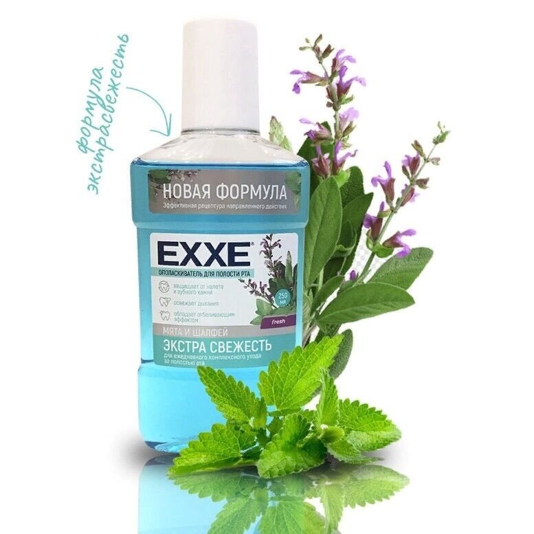 Ополаскиватель для рта EXXE Экстра свежесть мята и шалфей, 250 мл, шалфей интересное: