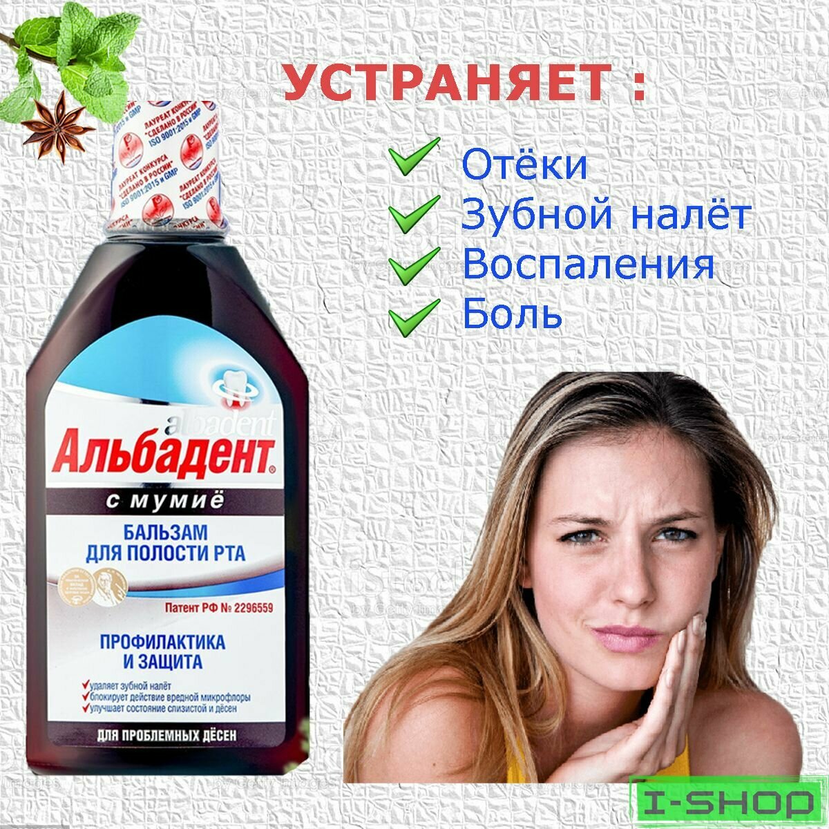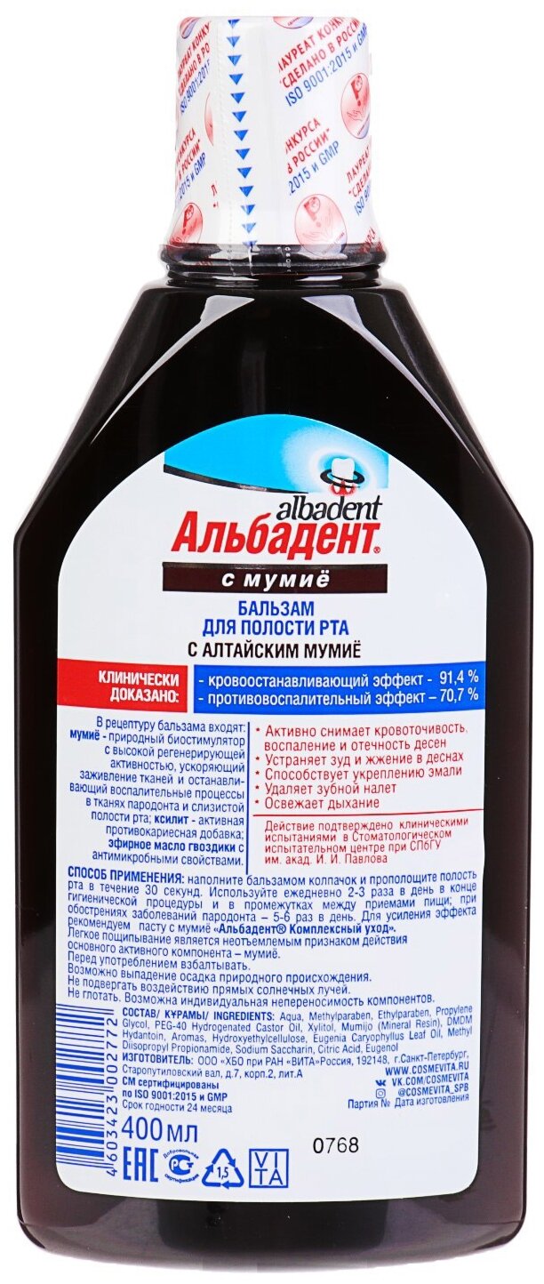 Ниже Вы можете прочитать отзывы на Альбадент бальзам для полости рта с мумие, 400 мл, мята и травы, коричневый, ознакомится с подробными характеристиками, посмотреть интересные обзоры и фотографии на Альбадент бальзам для полости рта с мумие, 400 мл, мята и травы, коричневый.