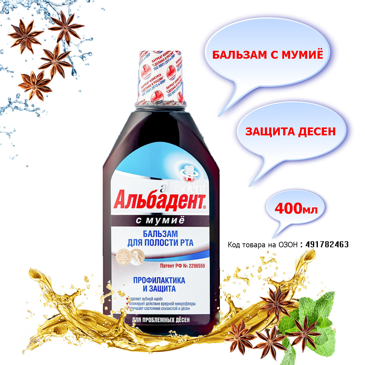 Альбадент бальзам для полости рта с мумие, 400 мл, мята и травы, коричневый интересное: