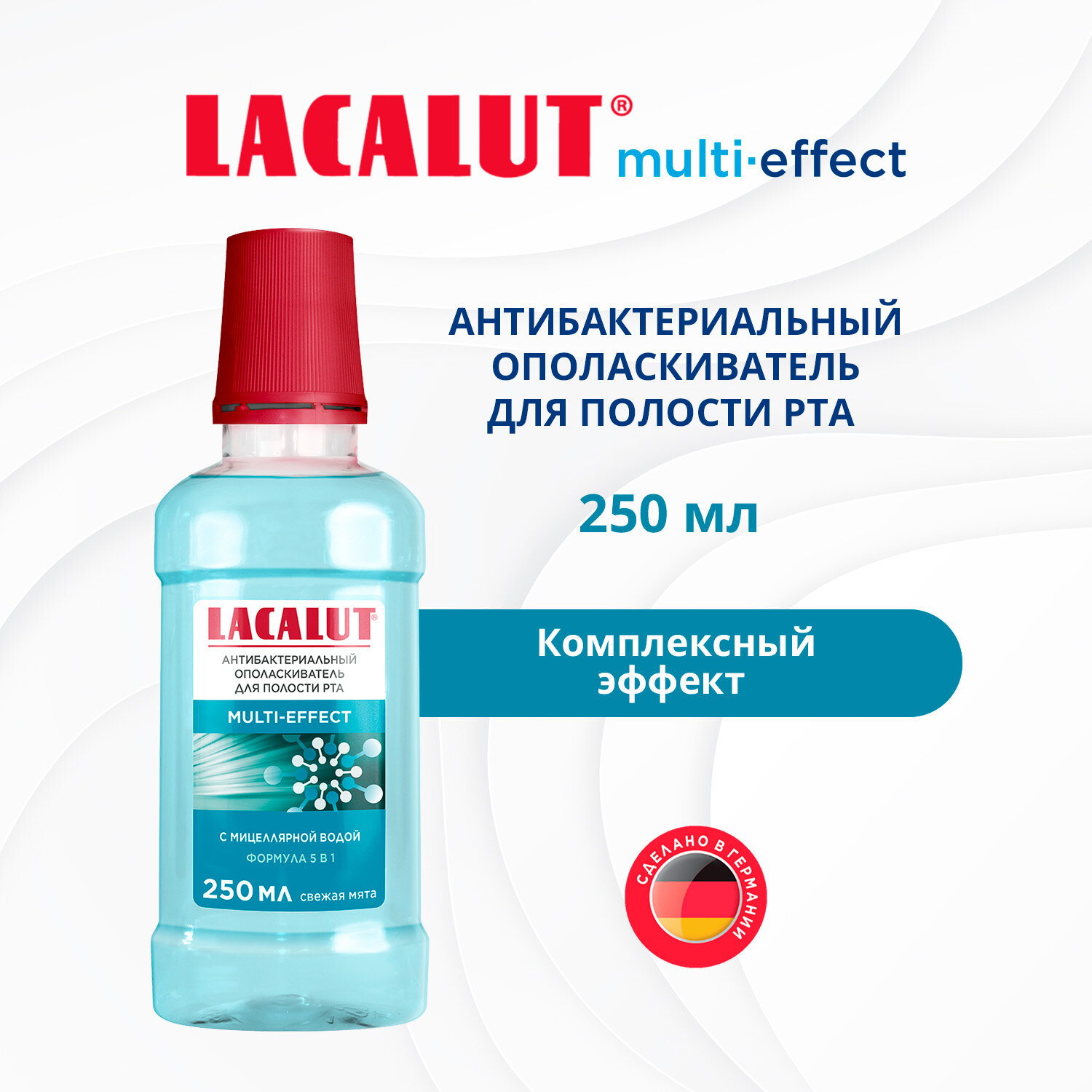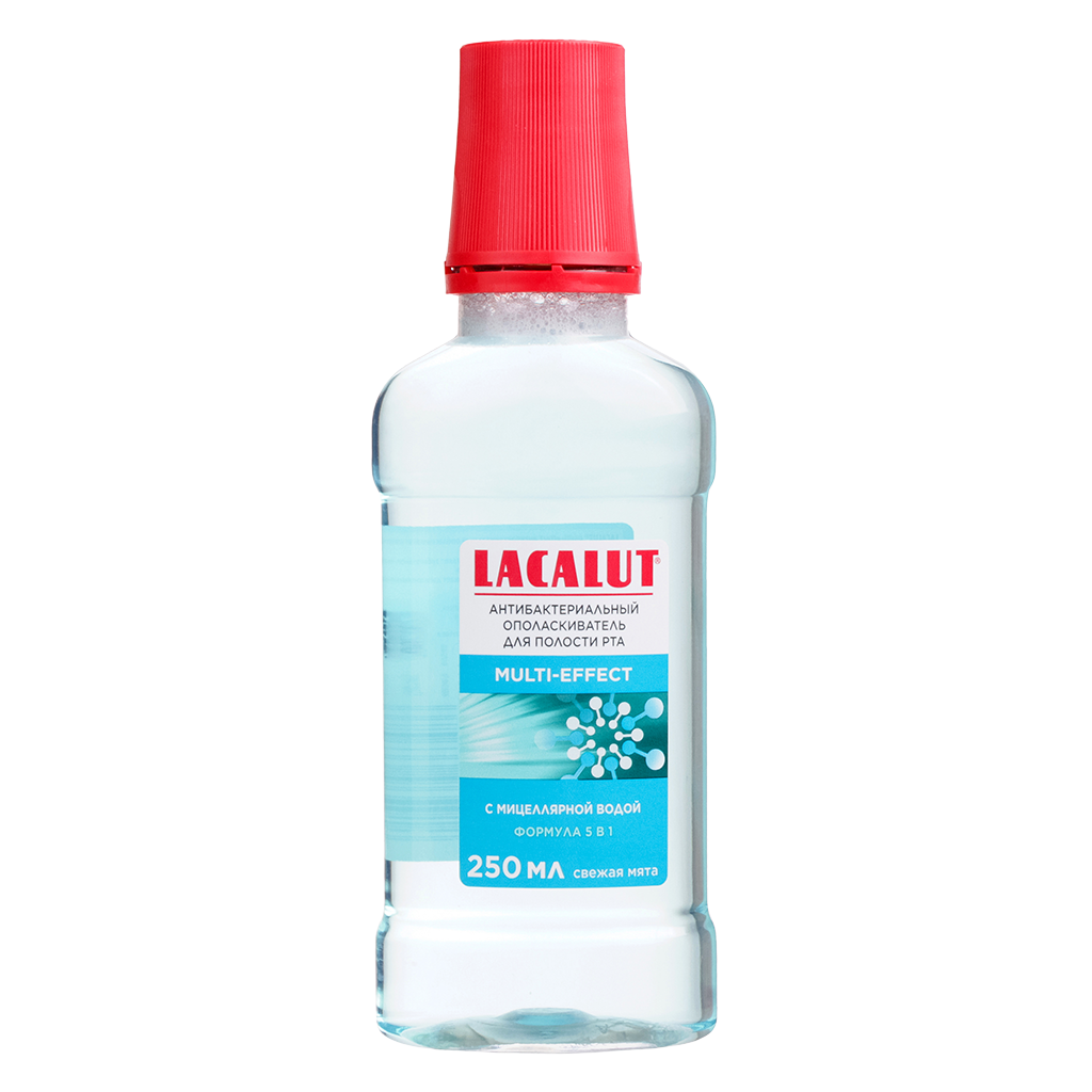 | Дополнительная информация | Антибактериальный ополаскиватель для полости рта Lacalut multi-effect снижает образование зубного налета и дополнительно очищает поверхность эмали благодаря мицеллам. Оказывает комплексный эффект 6 в 1 на полость рта: Снижает количество бактерийУменьшает образование зубного налетаЗащищает от кариесаУхаживает за деснамиОсветляет зубную эмальОсвежает дыханиеНа первый взгляд, при ежедневном использовании ополаскивателя Lacalut multi-effect, может показаться незаметным, но при длительном использовании эффект будет очевидным и значительным. |