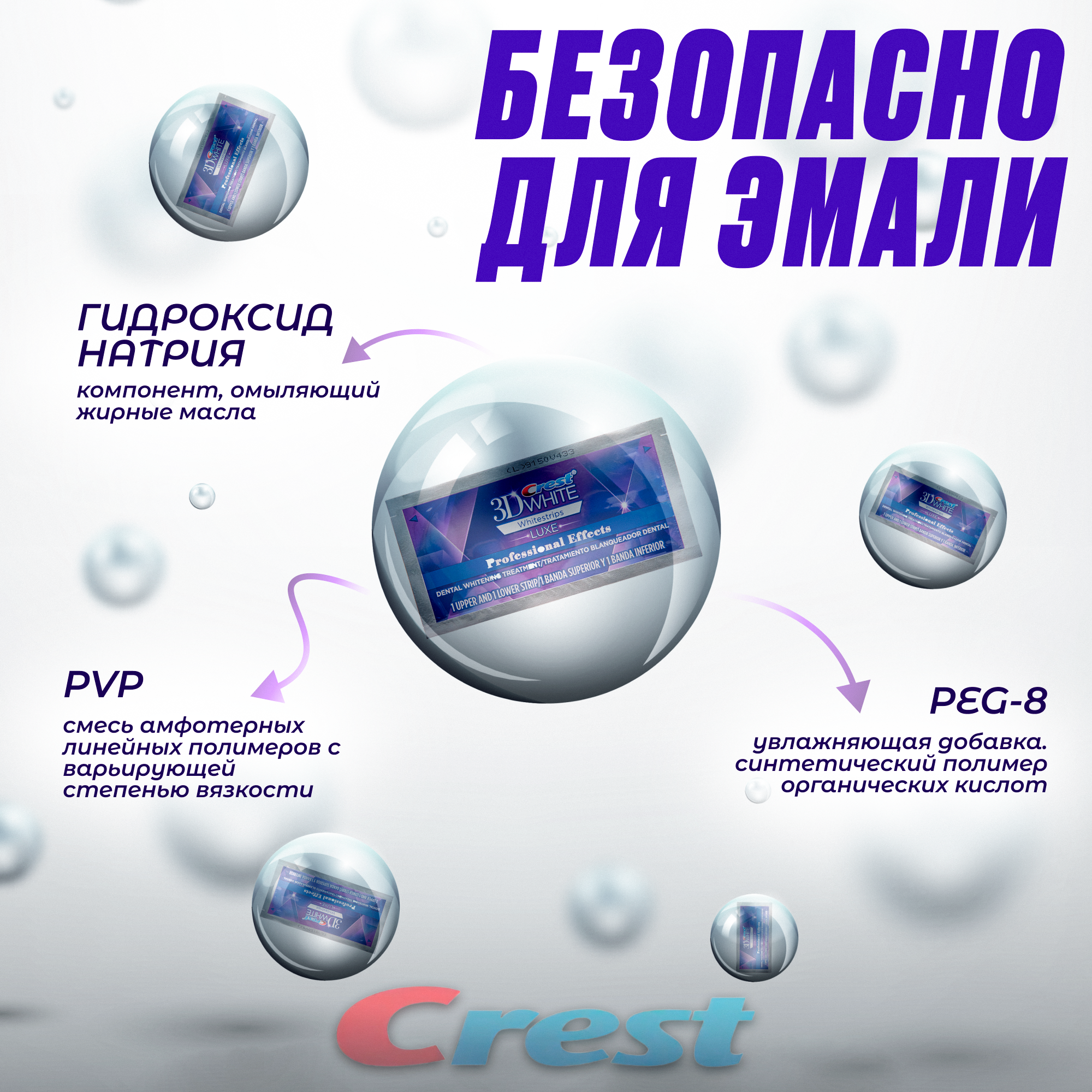 | Состав | Поливинилпирролидон, полиэтиленгликоль, вода, пероксид водорода, акрилат сополимер, гидроксид натрия, сахарин натрия |