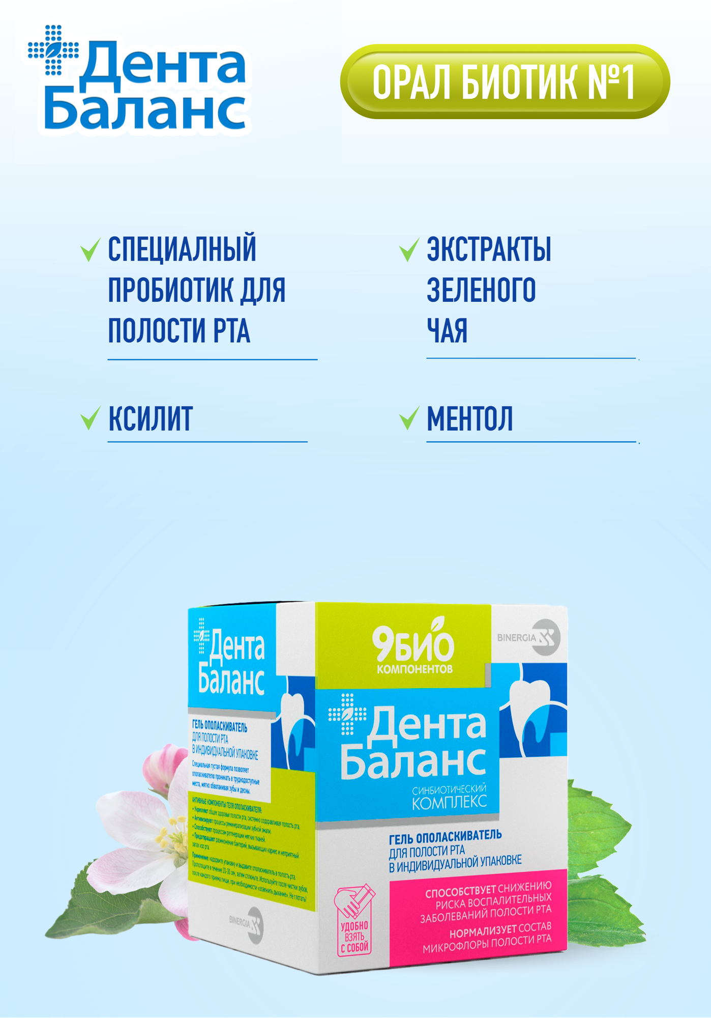 Антибактериальный гель ополаскиватель ДентаБаланс для полости рта и ухода за деснами, защита от кариеса и укрепление эмали, освежающий, 30 шт по 7 мл интересное:
