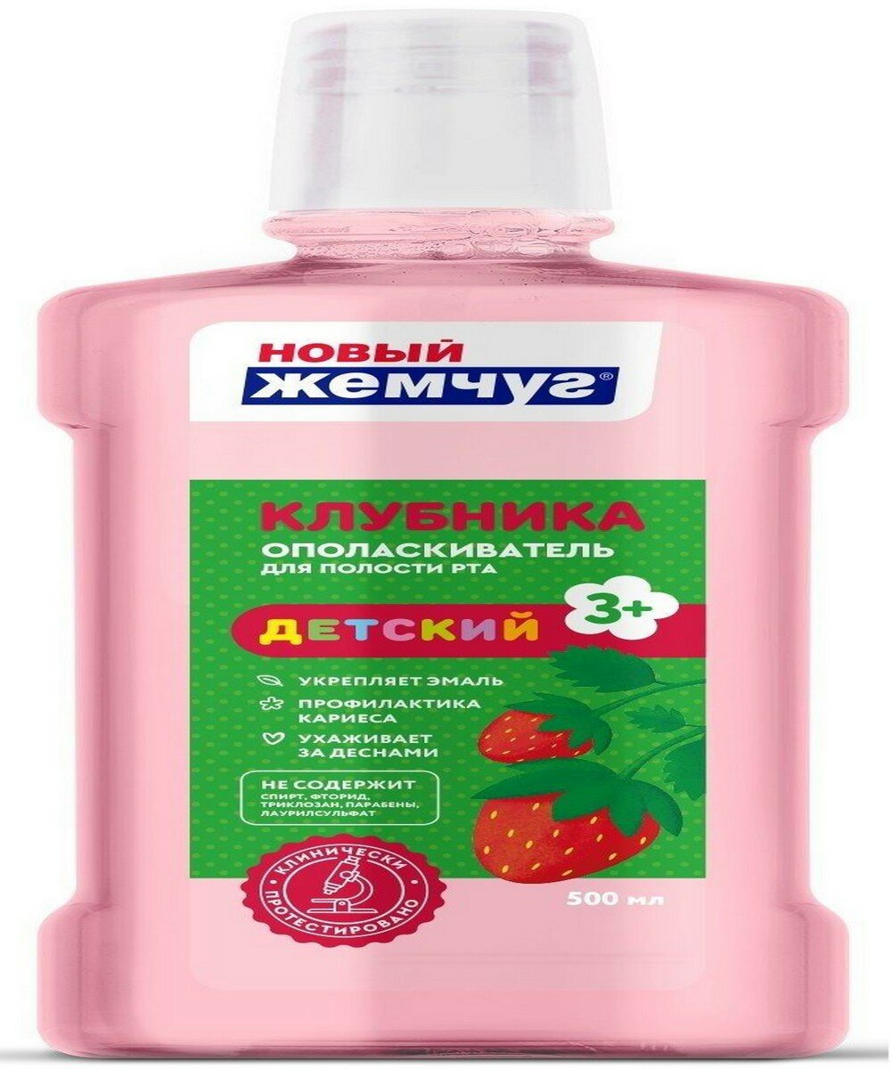 Купить Детский ополаскиватель для полости рта Новый Жемчуг Клубника 500 мл.