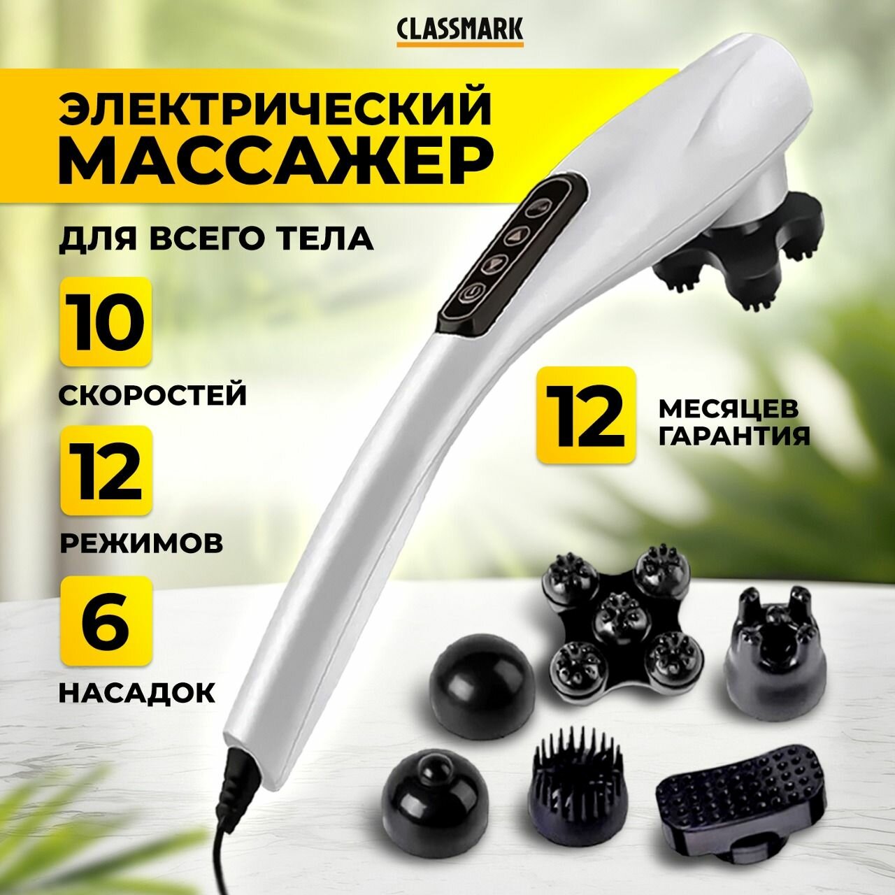 Массажер для тела Classmark PL230714-3 электрический вибромассажер антицеллюлитный для ног, рук, шеи и спины, 6 насадок на все группы мышц и 12 режимов работы, 10 скоростей интересное: