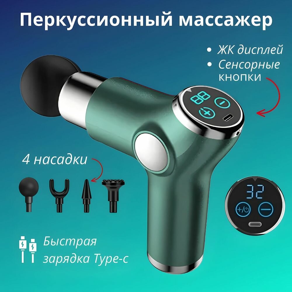 Перкуссионный массажер пистолет для ног спины и тела Mini Fascial Gun KH-515 Зеленый интересное: