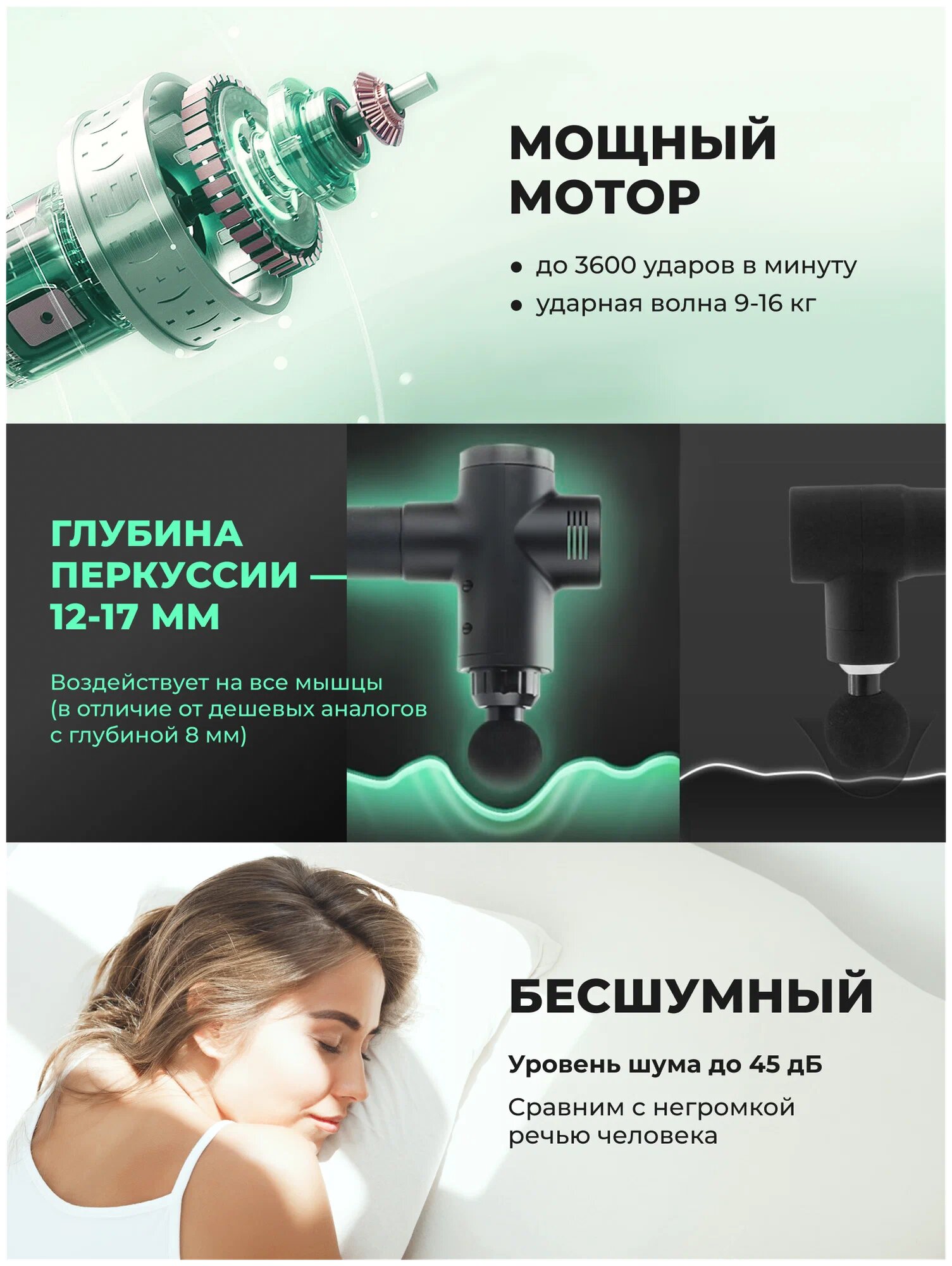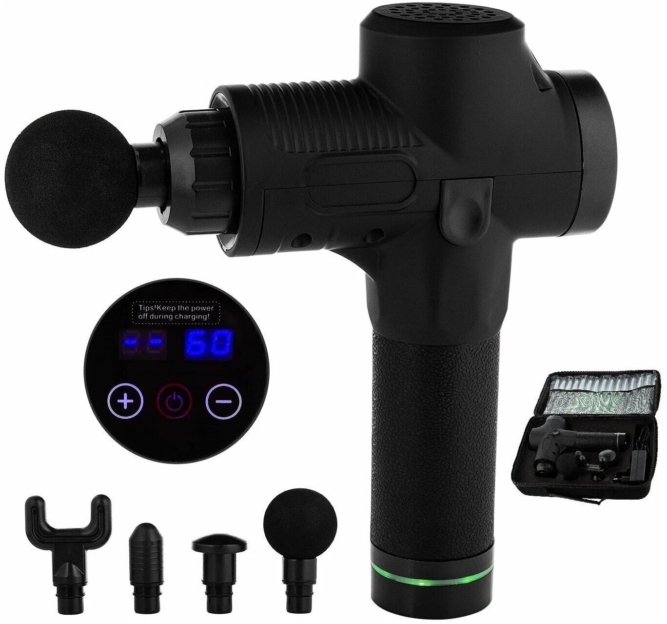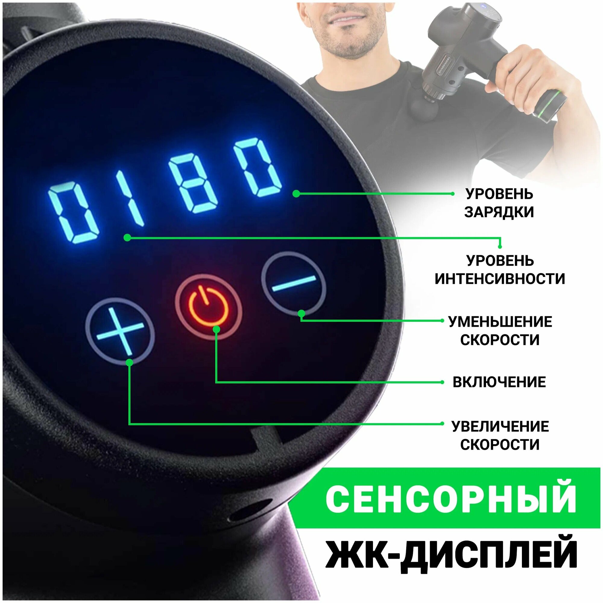 Перкуссионный вибрационный ударный электромассажер пистолет, до 3 300 уд/мин, 6 насадок интересное:
