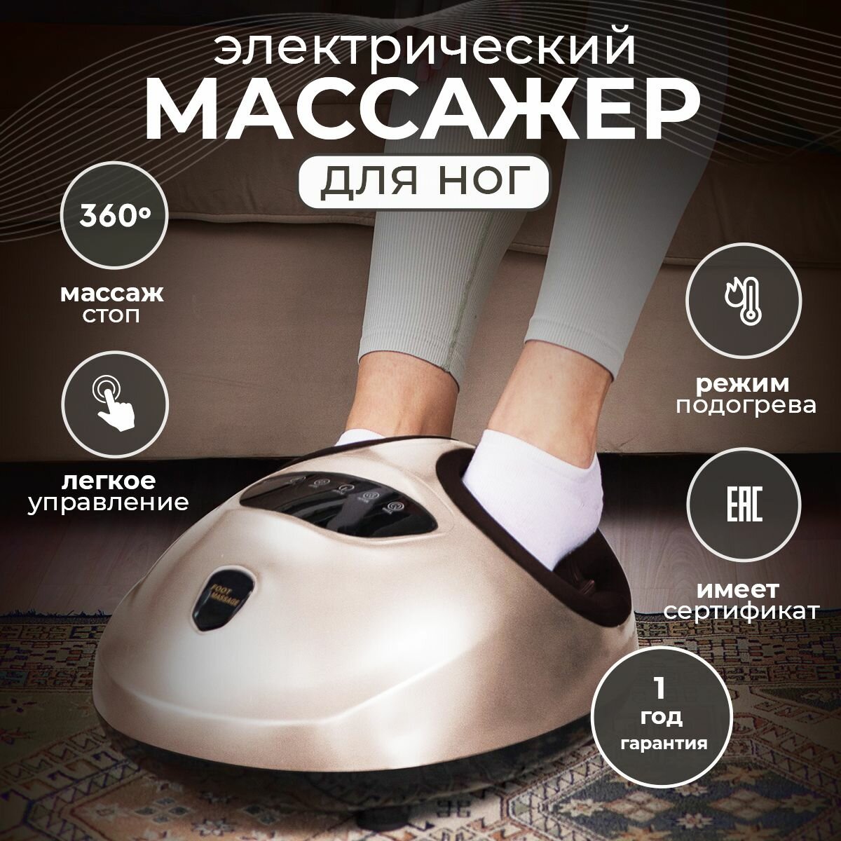 Массажер для ног электрический роликовый с подогревом СМ2704 золотой интересное: