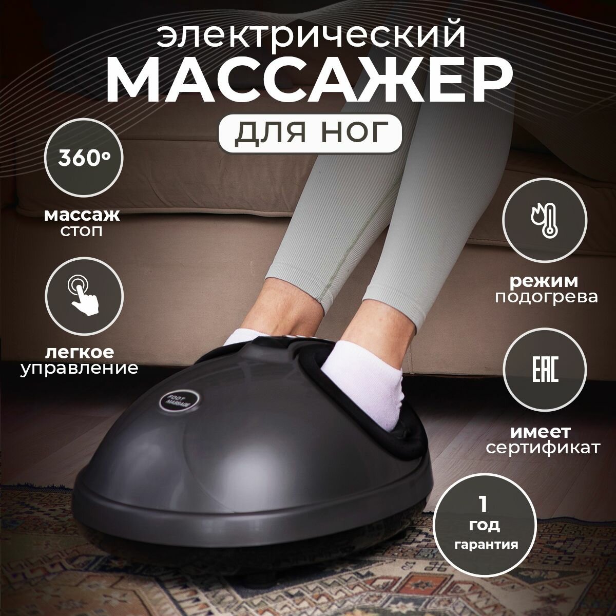 Массажер для ног стоп электрический шиацу СМ2709 с ИК прогревом серый интересное: