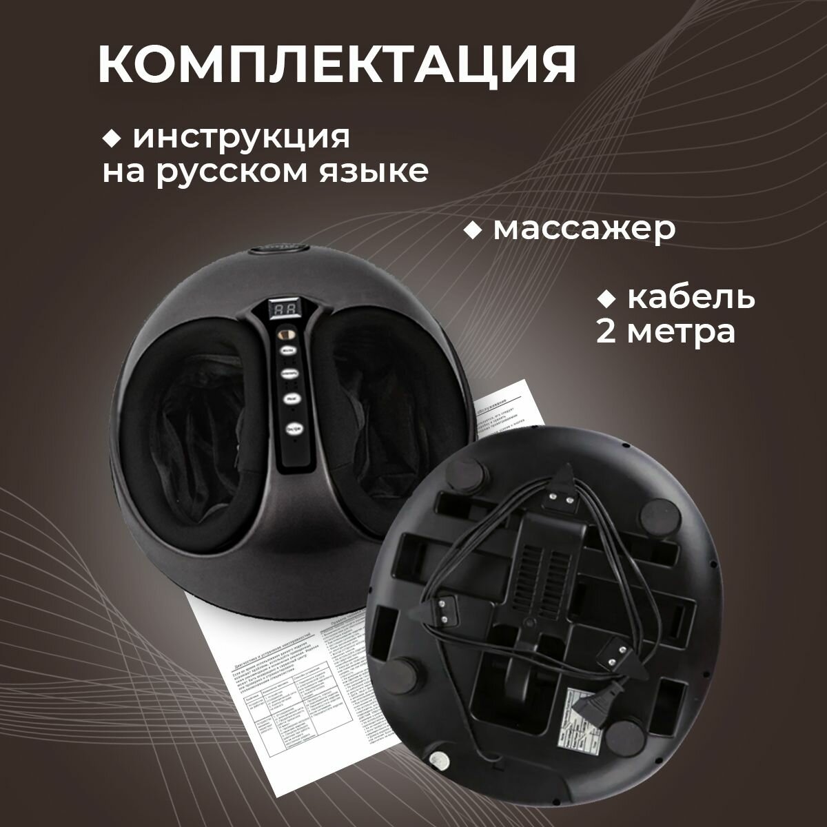 | Подробная комплектация | Электрический массажер для ног - 1 шт., инструкция на русском языке |