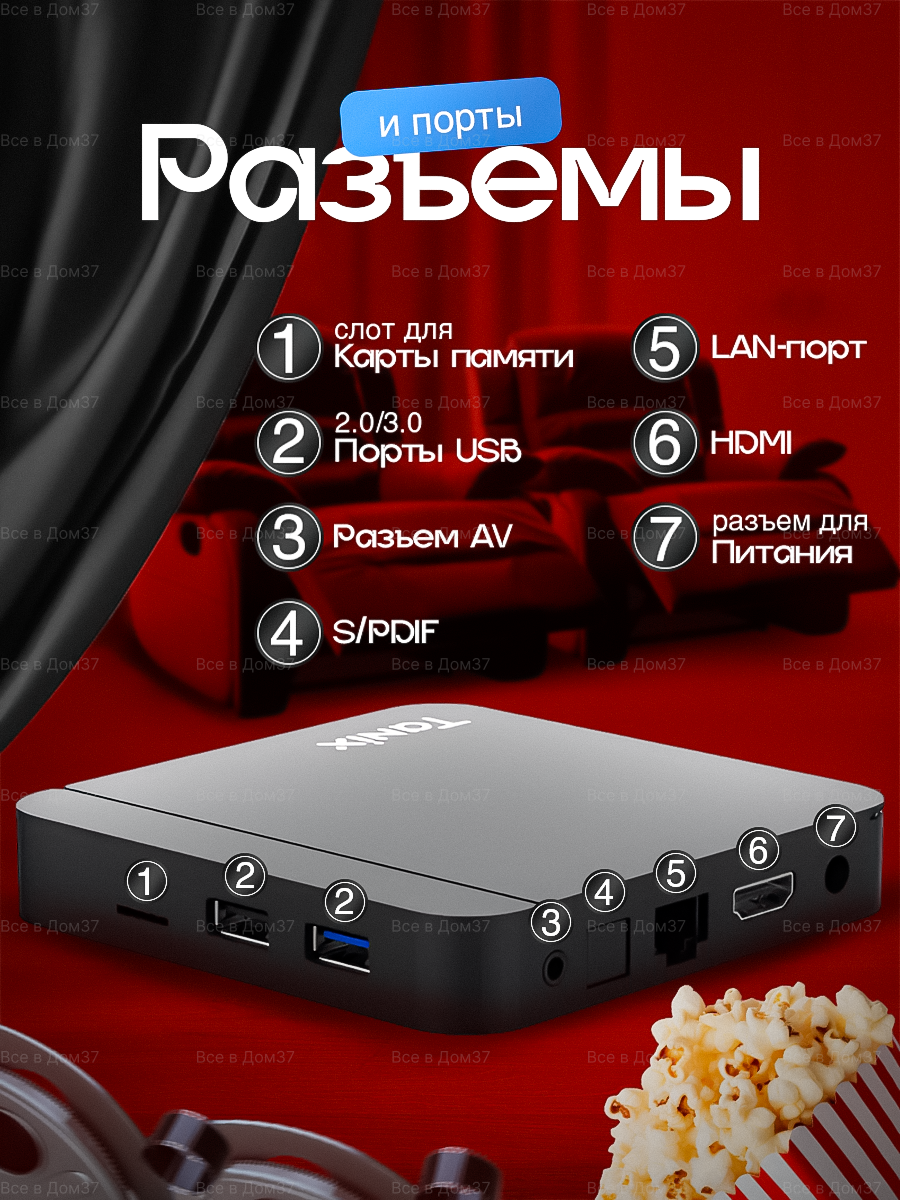 | Интерфейсы | Ethernet 10/100 / USB 2.0 Type-A / USB 3.0 Type-A / вход аудио оптический / выход HDMI / выход аудио оптический / выход видео компонентный |