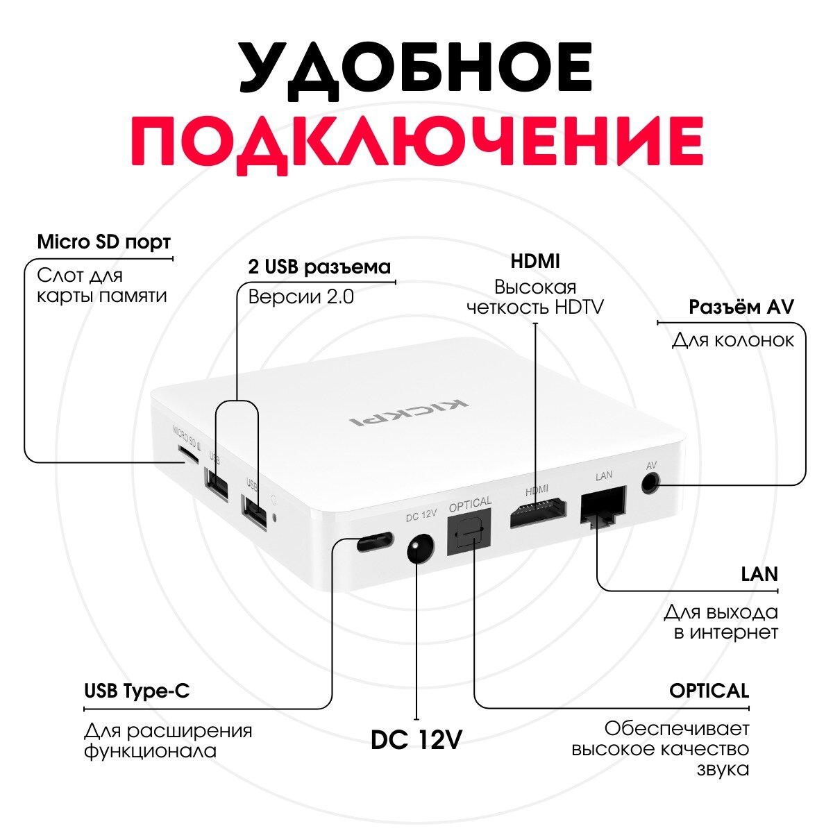 Купить KICKPI KP1 2024 Смарт ТВ приставка для телевизора 2/32Gb, 4K. Андроид ТВ бокс. сертификация Google Netfix. Smart TV/Android 11/WI-FI 2.4&5G, Bluetooth 5.0