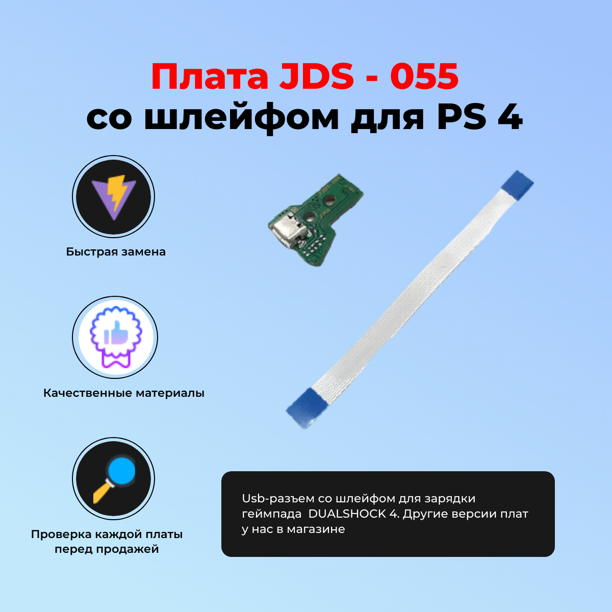 Купить Плата JDS - 055 050 со шлейфом для зарядки беспроводного геймпада SONY PLAYSTATION DUALSHOCK 4