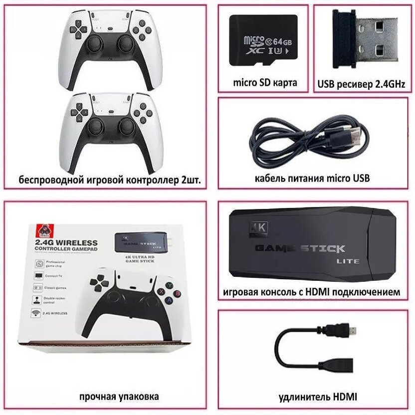 Игровая приставка Game Stick Lite 64 GB 4K, 20000+ Ретро Игр для телевизора, портативная приставка интересное: