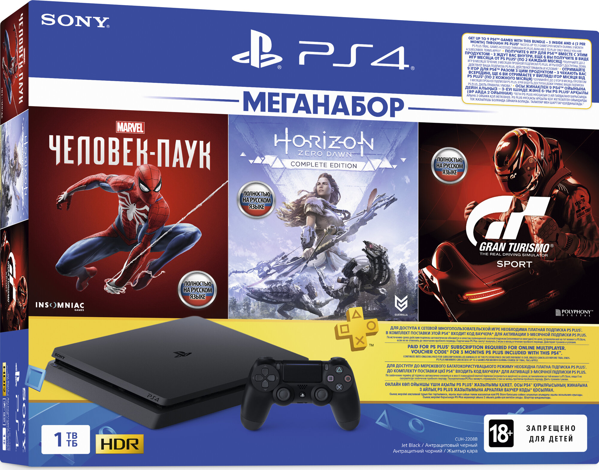 Sony Playstation 4 Slim 1Tb + Spider Man, Horizon Zero Dawn, Gran Turismo Sport интересное: