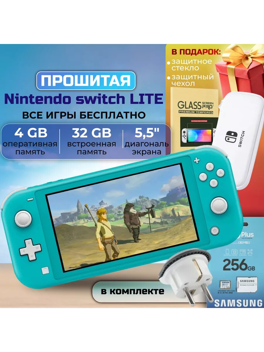 Купить Прошитая приставка Switch Lite голубая + 256GB, подарки