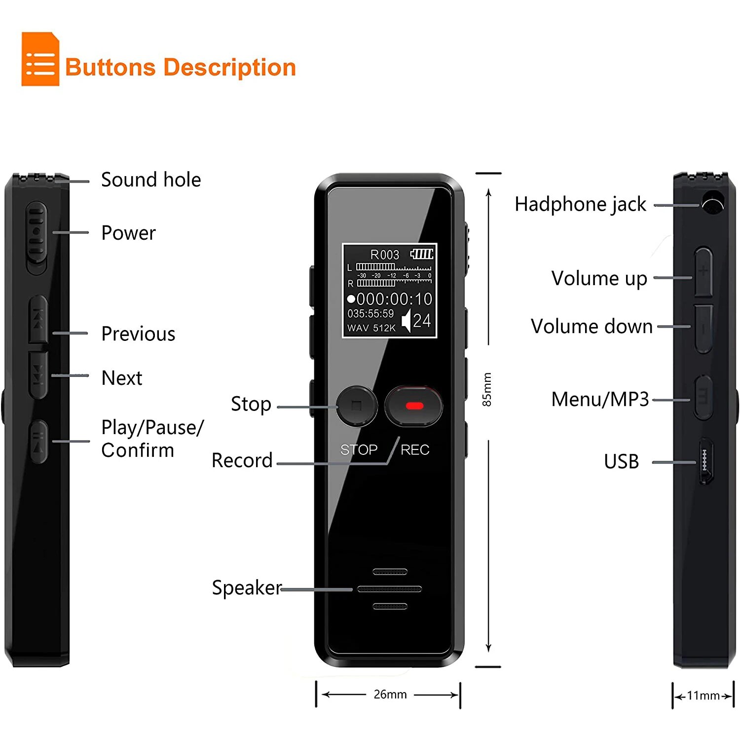 Цифровой диктофон Vandlion V90, Черный, 64 ГБ