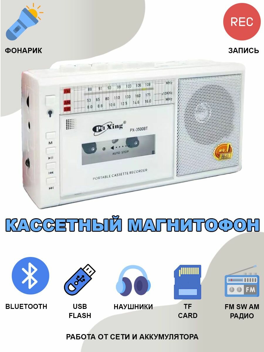 Кассетный магнитофон MyLatso плеер радиоприемник блютуз от сети и аккумулятора с фонариком интересное: