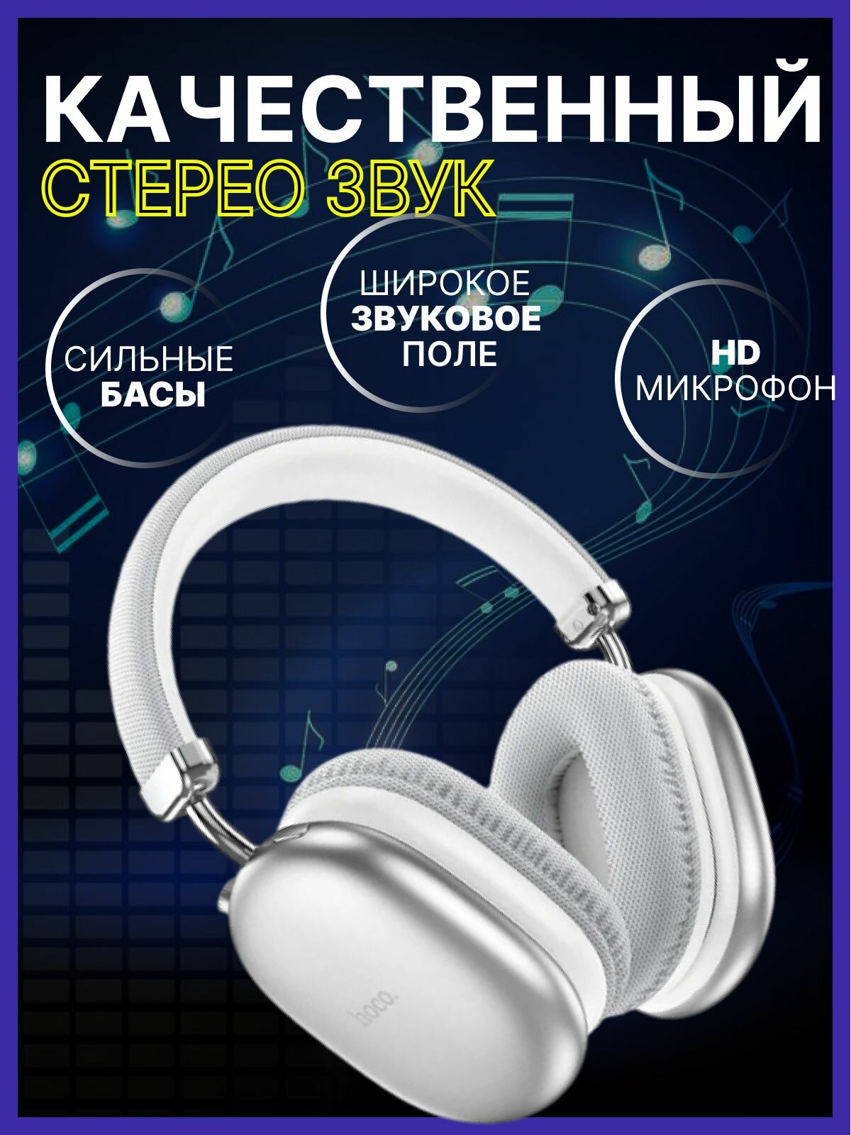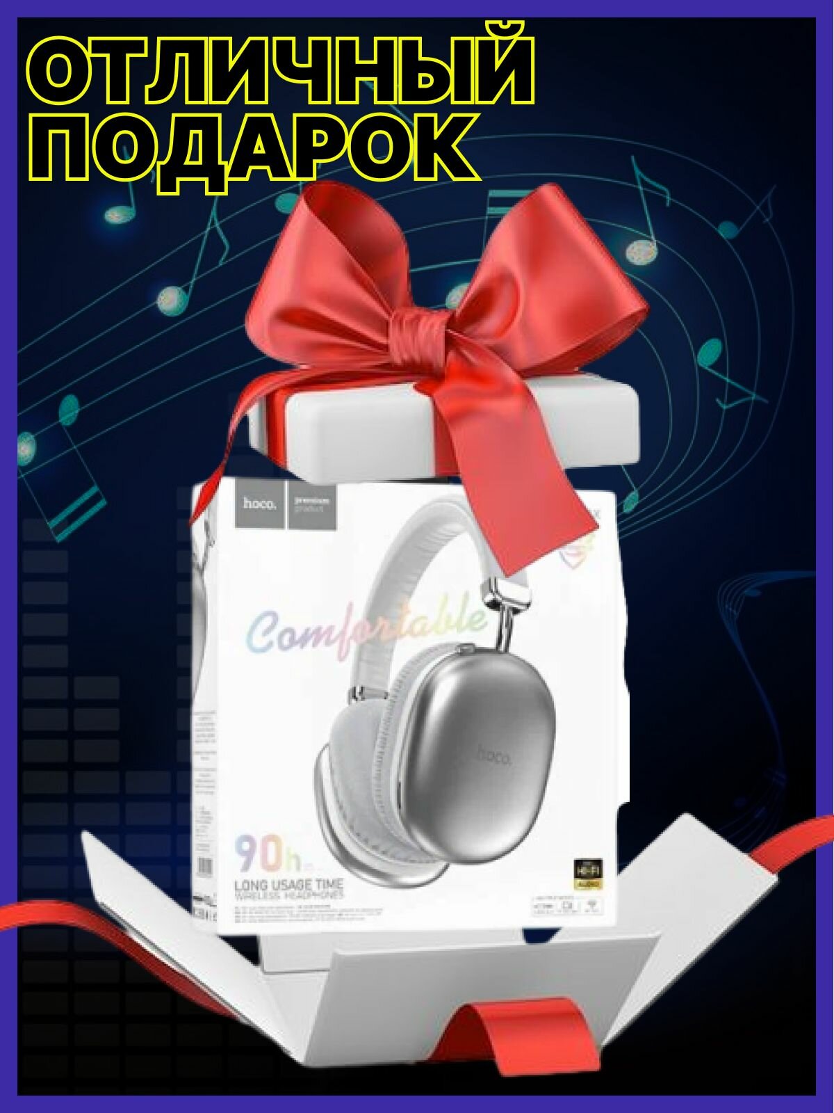 Купить Наушники беспроводные с микрофоном hoco W35 MAX, Bluetooth, 3.5 мм, большие накладные наушники, серебристый