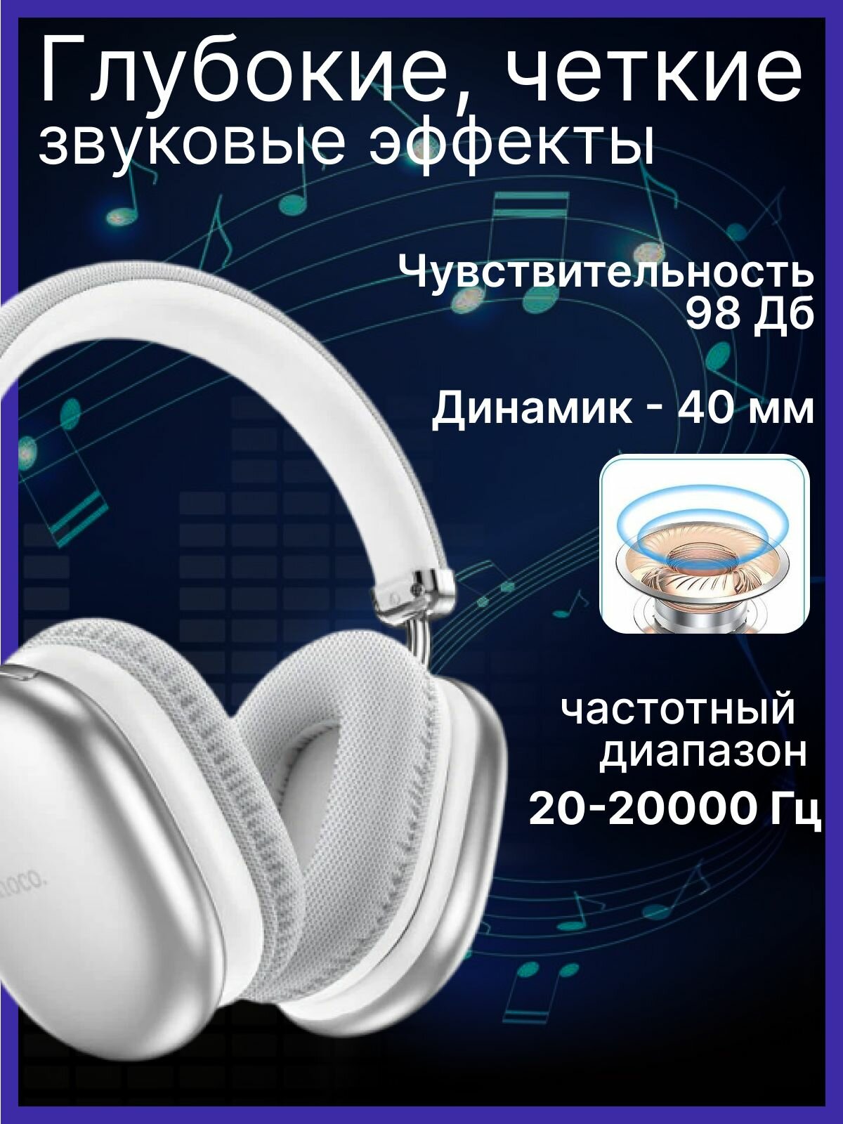 СохранитьНаушники беспроводные с микрофоном hoco W35 MAX, Bluetooth, 3.5 мм, большие накладные наушники, серебристый интересное: