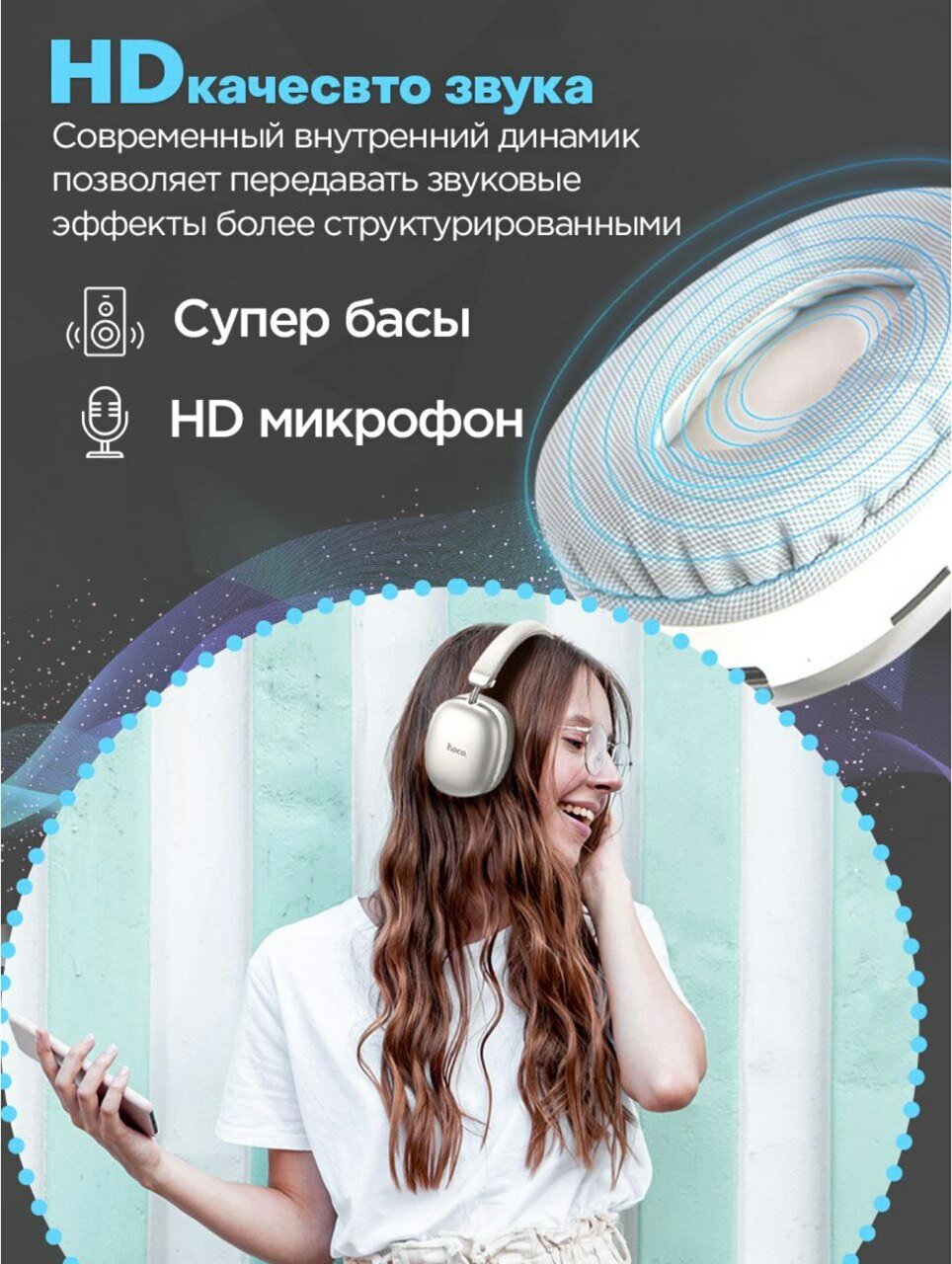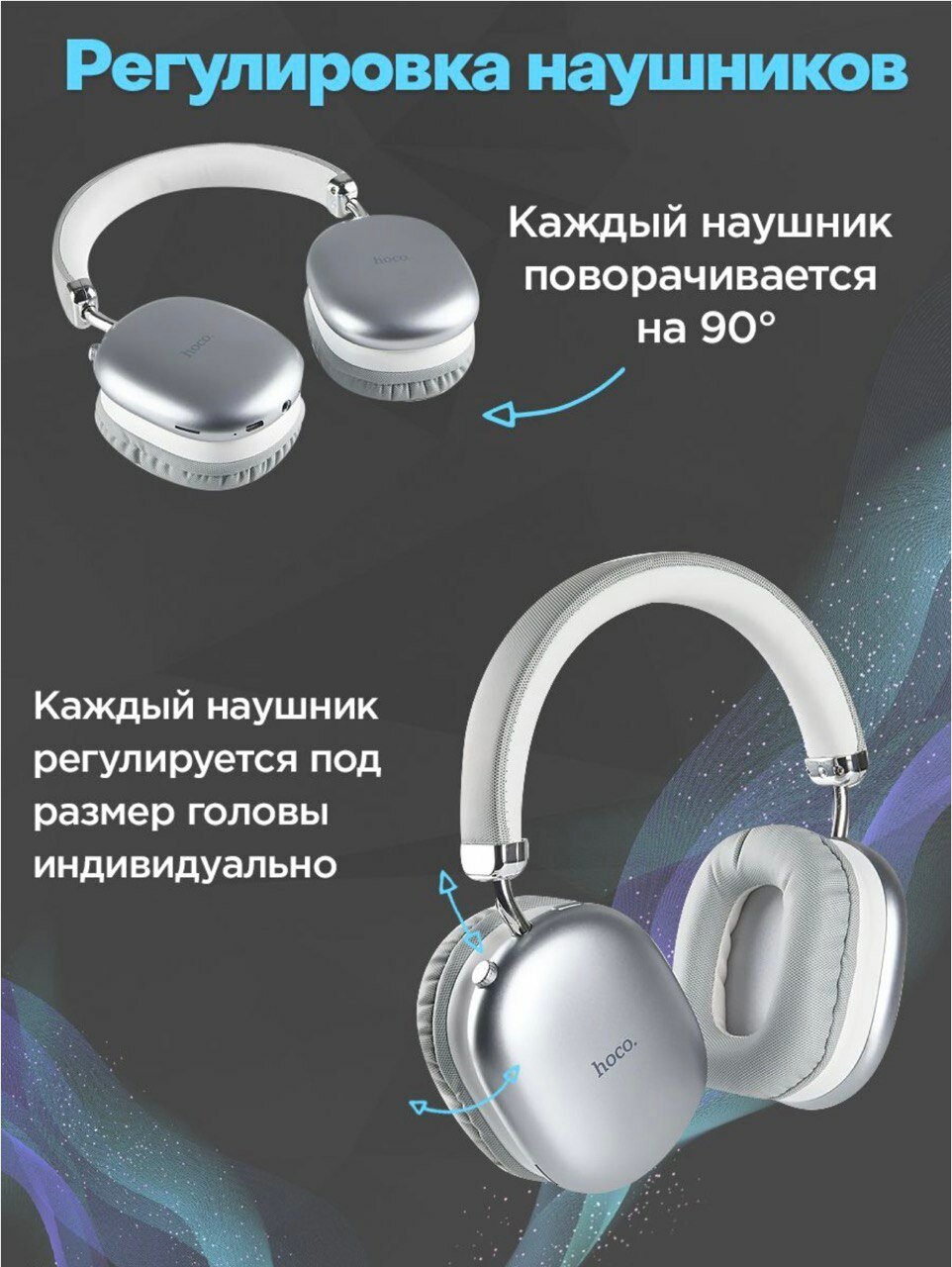 Наушники Hoco с Bluetooth 5,3 и временем работы до 90 ч
