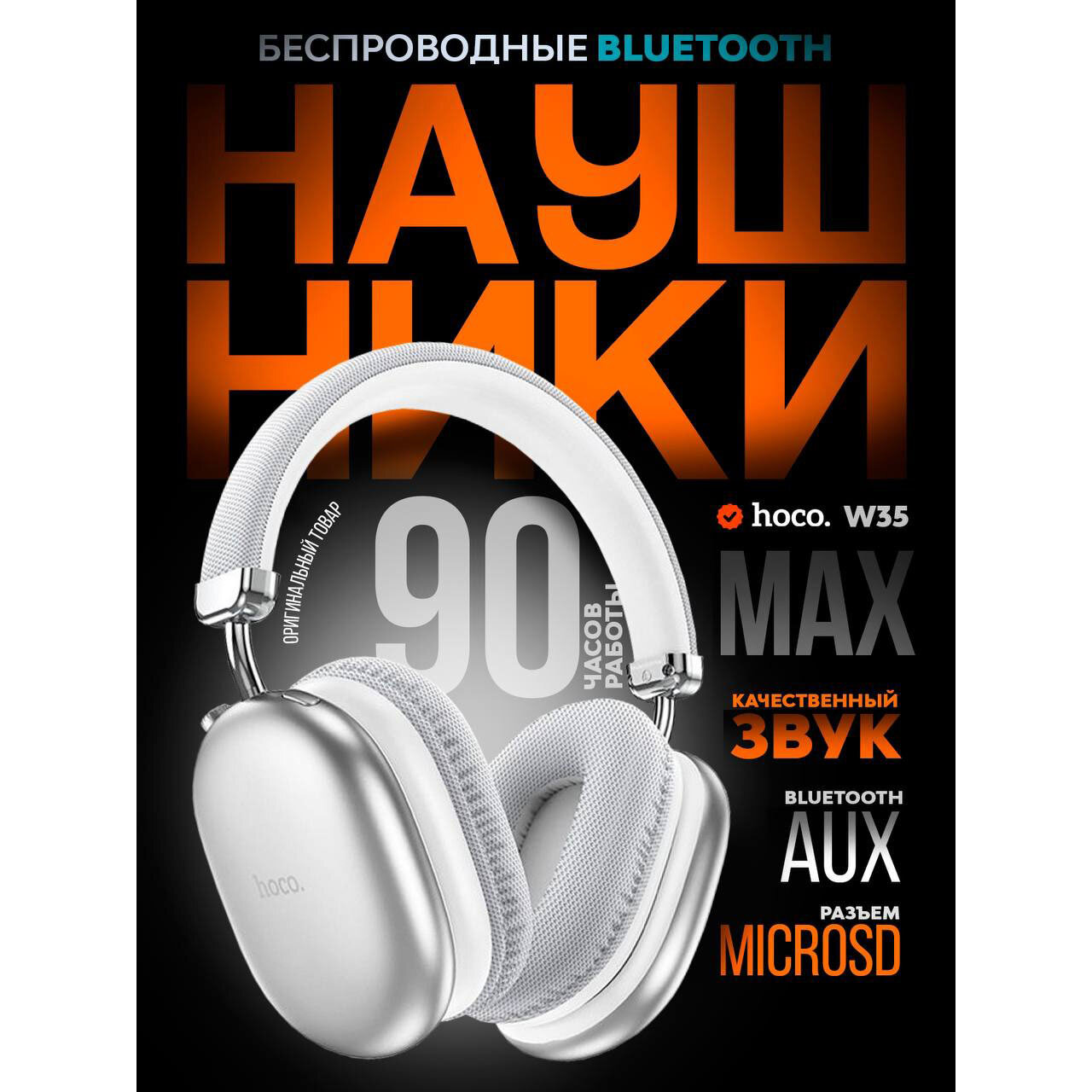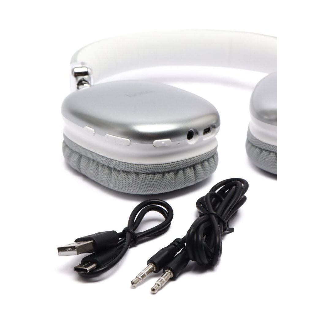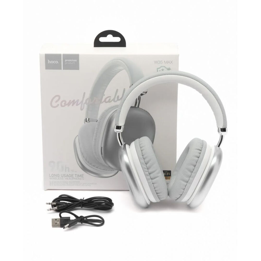 Наушники беспроводные с микрофоном hoco W35 MAX, Bluetooth, 3.5 мм, большие накладные наушники, серебристый