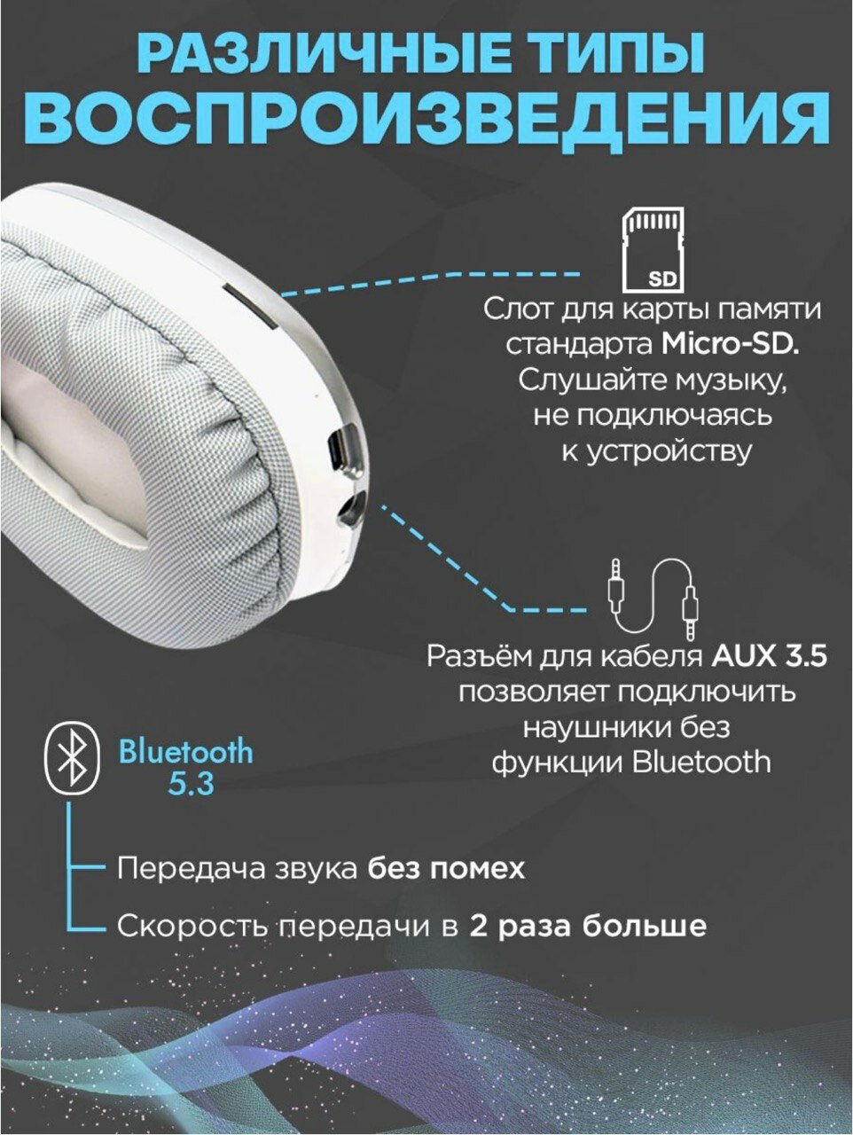 | Дополнительная информация | наушники беспроводные накладные 1шт; кабель для зарядки USB - Type С 1 шт; Кабель для подключения AUX 3.5 мм; инструкция по эксплуатации; фирменная подарочная упаковка |
