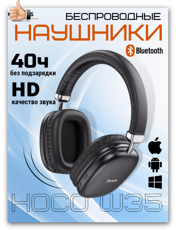 Беспроводные полноразмерные наушники с микрофоном Hoco W35 Max Bluetooth 5.3, цвет Черный