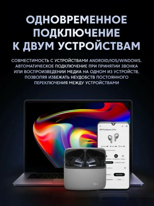 Беспроводные стерео-наушники ZMI PurSpace 2 Pro c активным шумоподавлением (ANC) и быстрой зарядкой TW200ZM GLOBAL интересное: