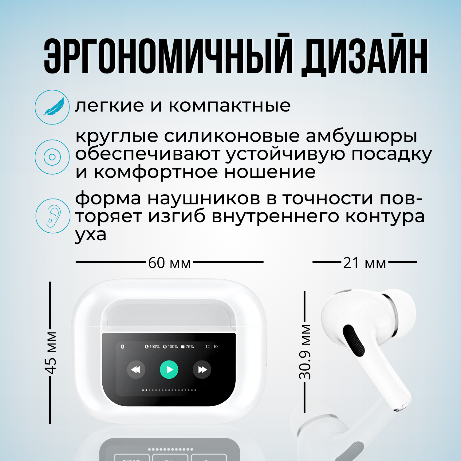 Наушники беспроводные с шумоподавлением и сенсорным экраном A9pro белые интересное:
