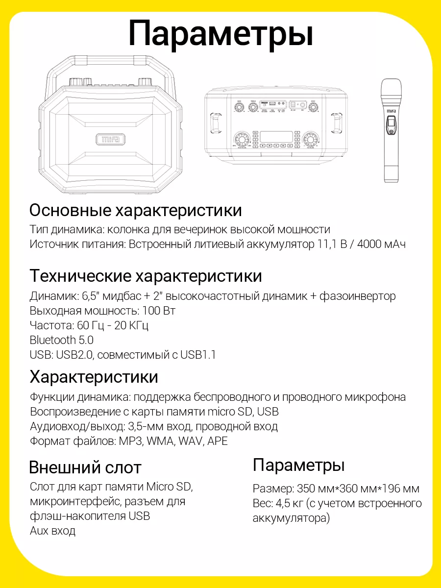 | Дополнительная информация | диаметр басового динамика 9 х 2 см |