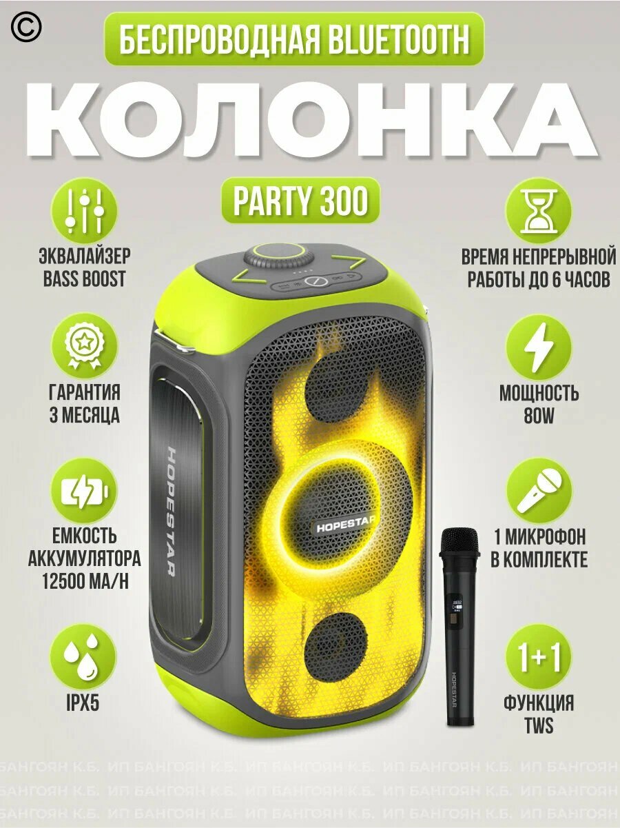 Большая беспроводная музыкальная колонка " Hopestar" Party 300 80 Вт / 3 режима Bass Boost (Пиковая мощность (PMPO) 300 Вт) интересное: