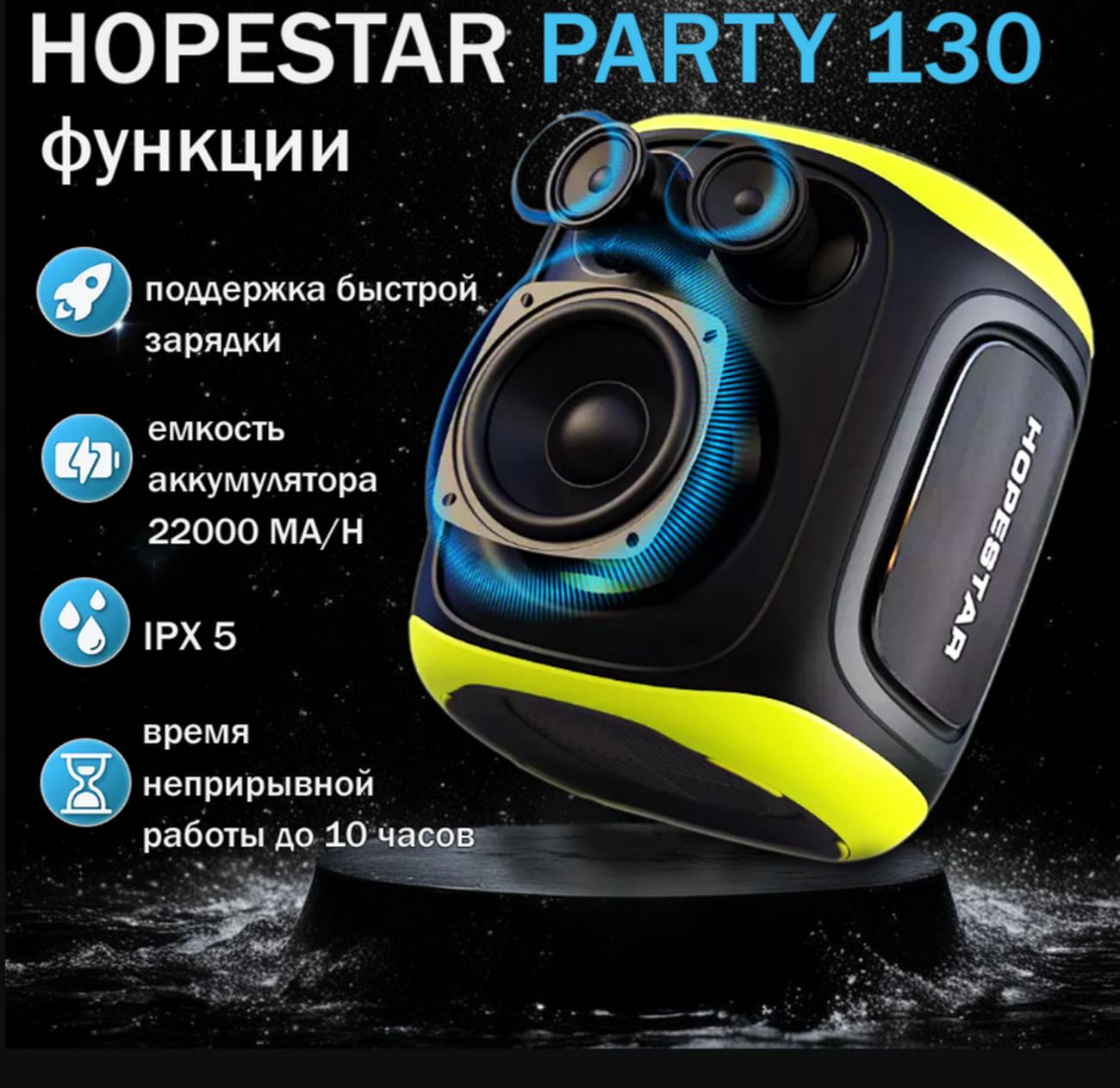 СохранитьПортативная Bluetooth Колонка Hopestar Party 130 Синий (2 микрофона) интересное:
