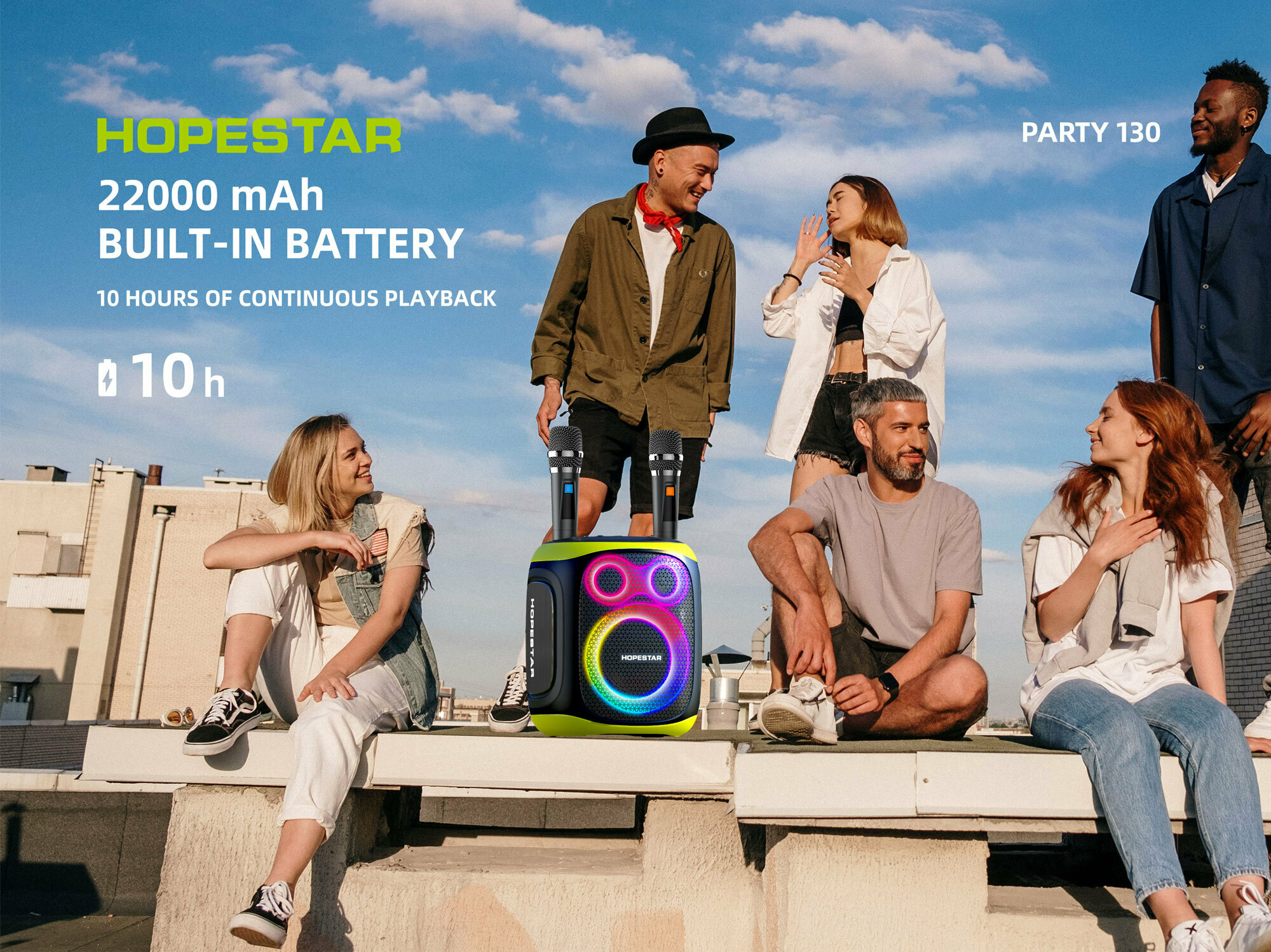Портативная Колонка Hopestar Party 130 с двумя беспроводными микрофонами