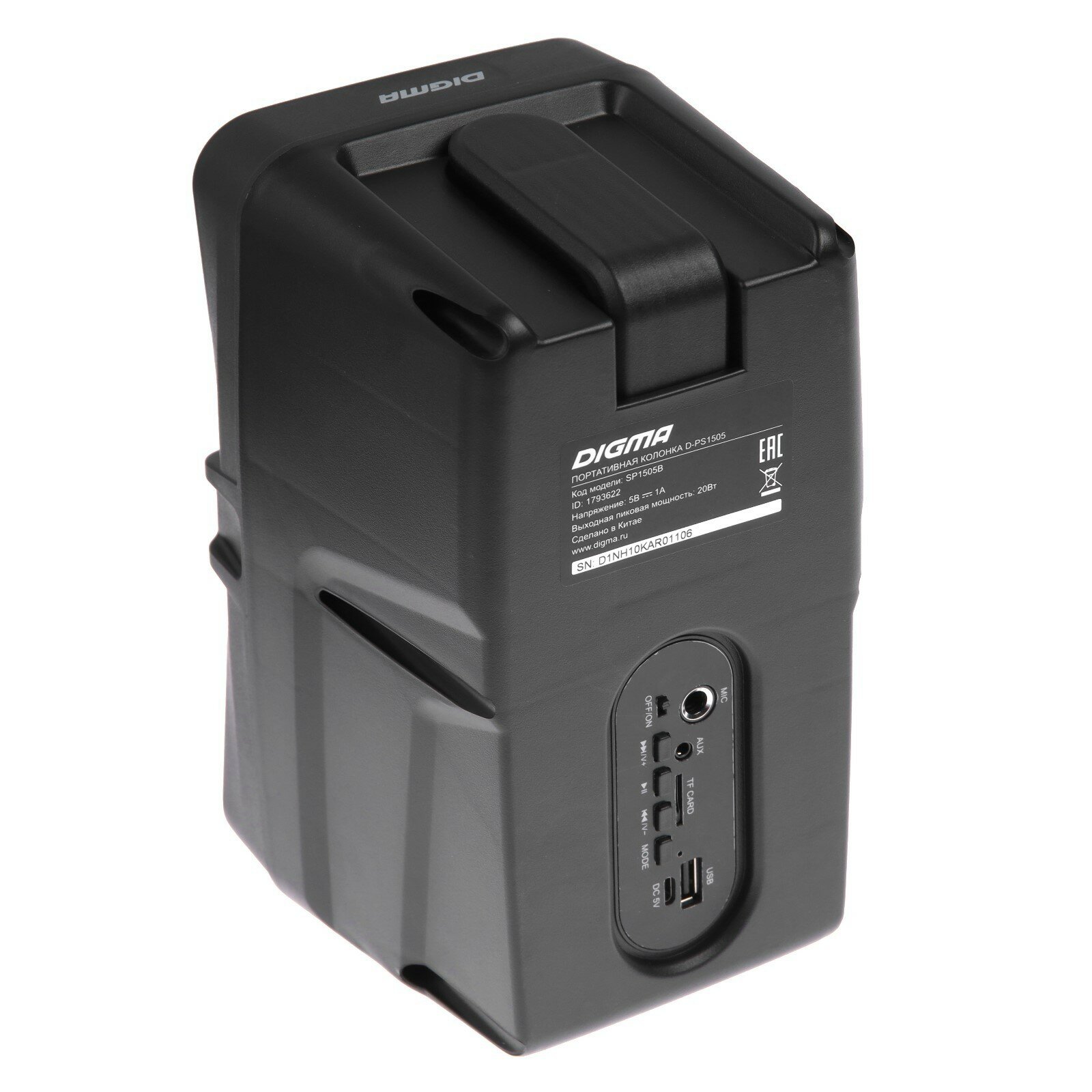 Портативная колонка Digma D-PS1505, подсветка, 20Вт, BT, microSD,USB,AUX,FM, 1200мАч, черная интересное: